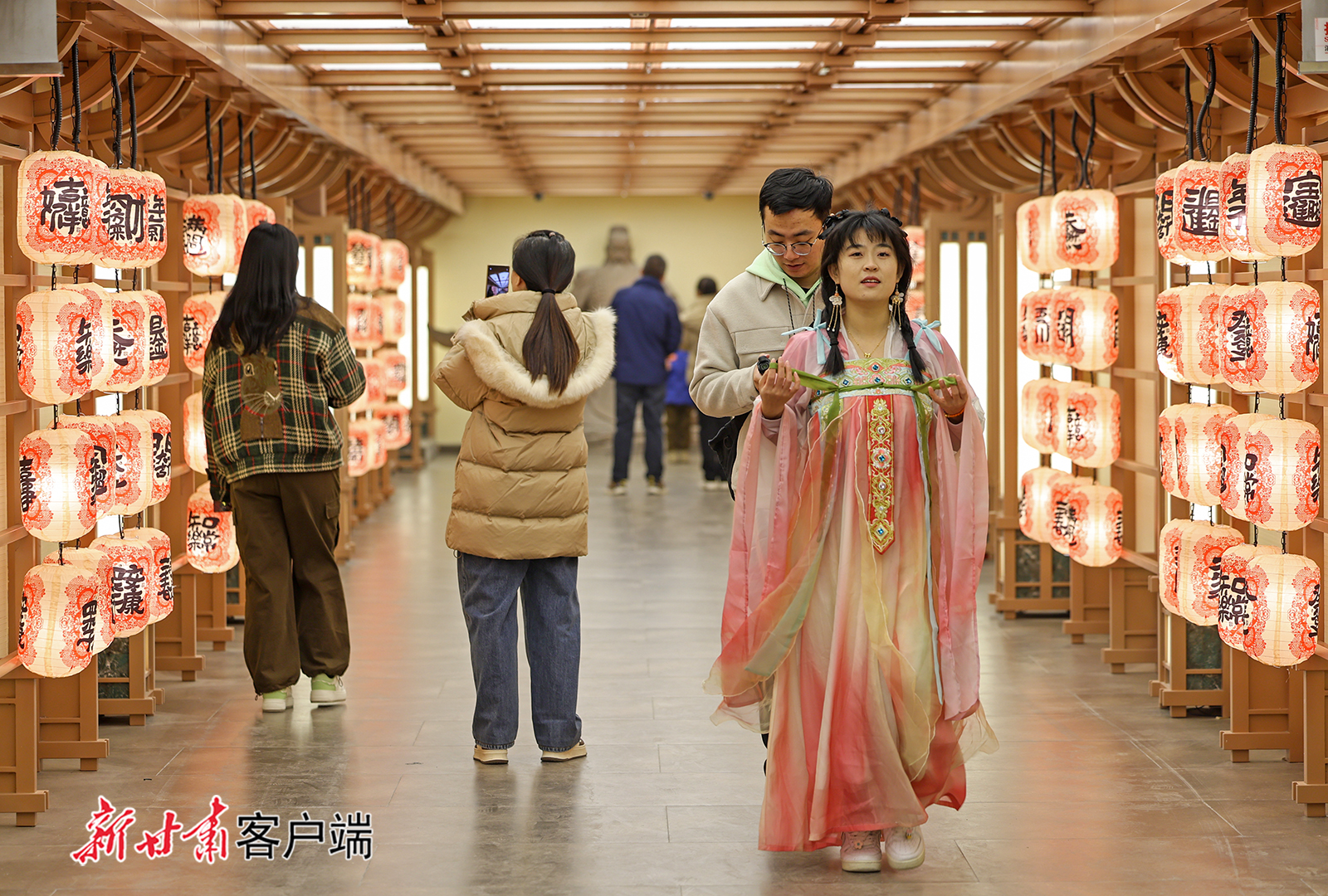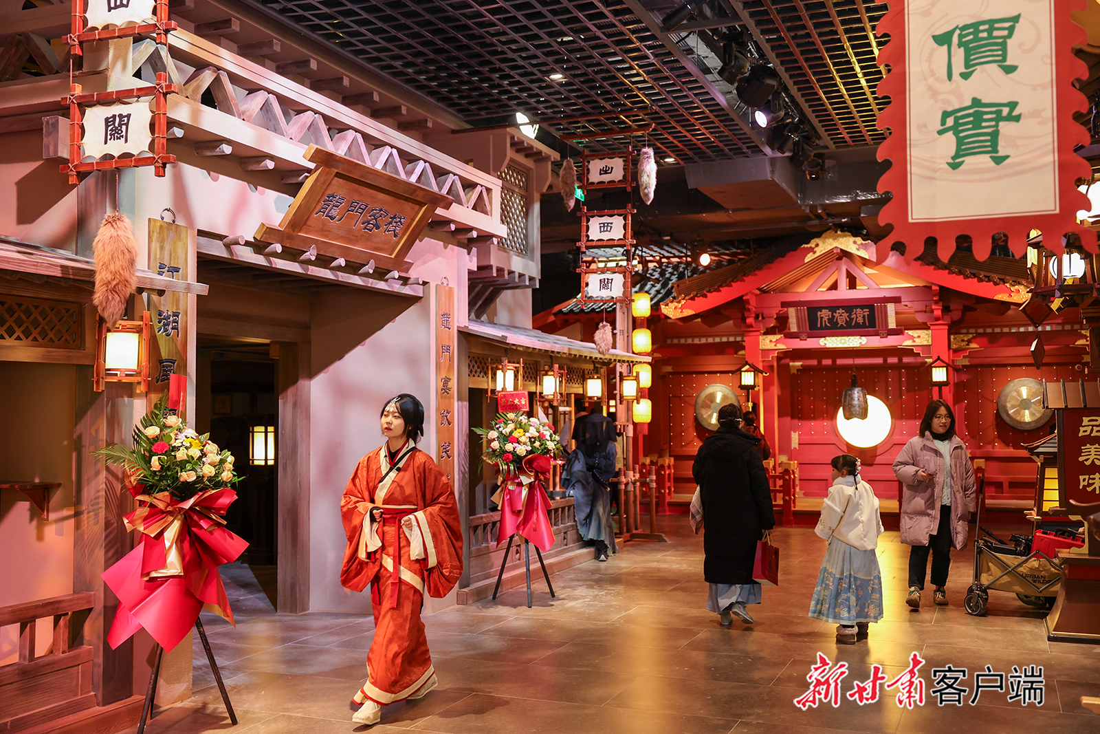 “客官请留步,喝碗热茶再逛呀!”寒冬时节,工作日的兰州中心商贸综合体负一层,身穿一身襦裙的“老板娘”李甜笑着招呼过往游客。她身后便是大名鼎鼎的“龙门客栈”。