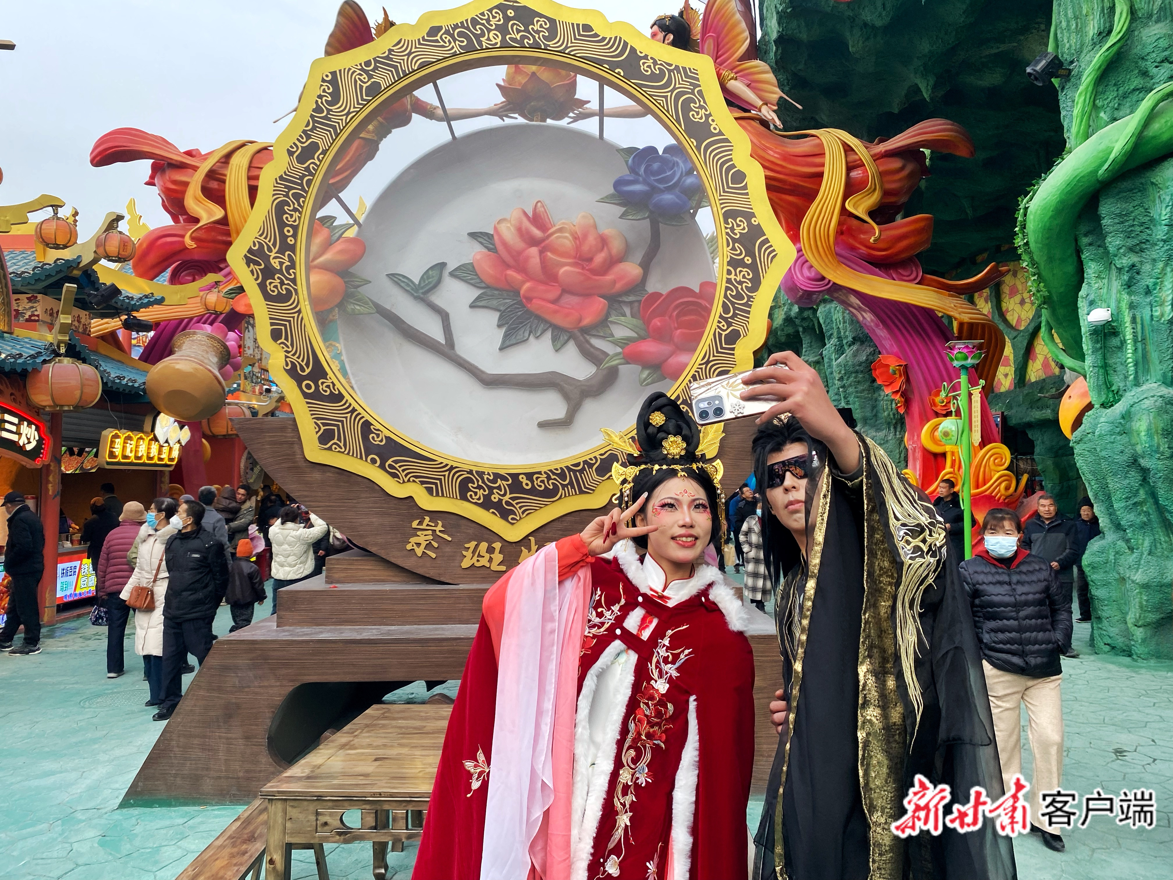 园内节目表演吸引众多游客驻足欣赏。新甘肃·甘肃日报记者 马伊星摄
