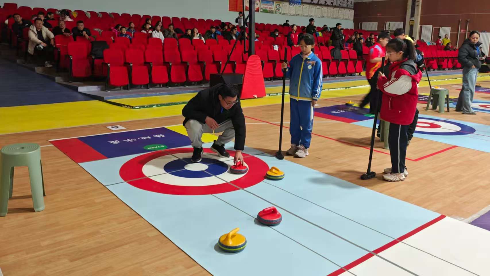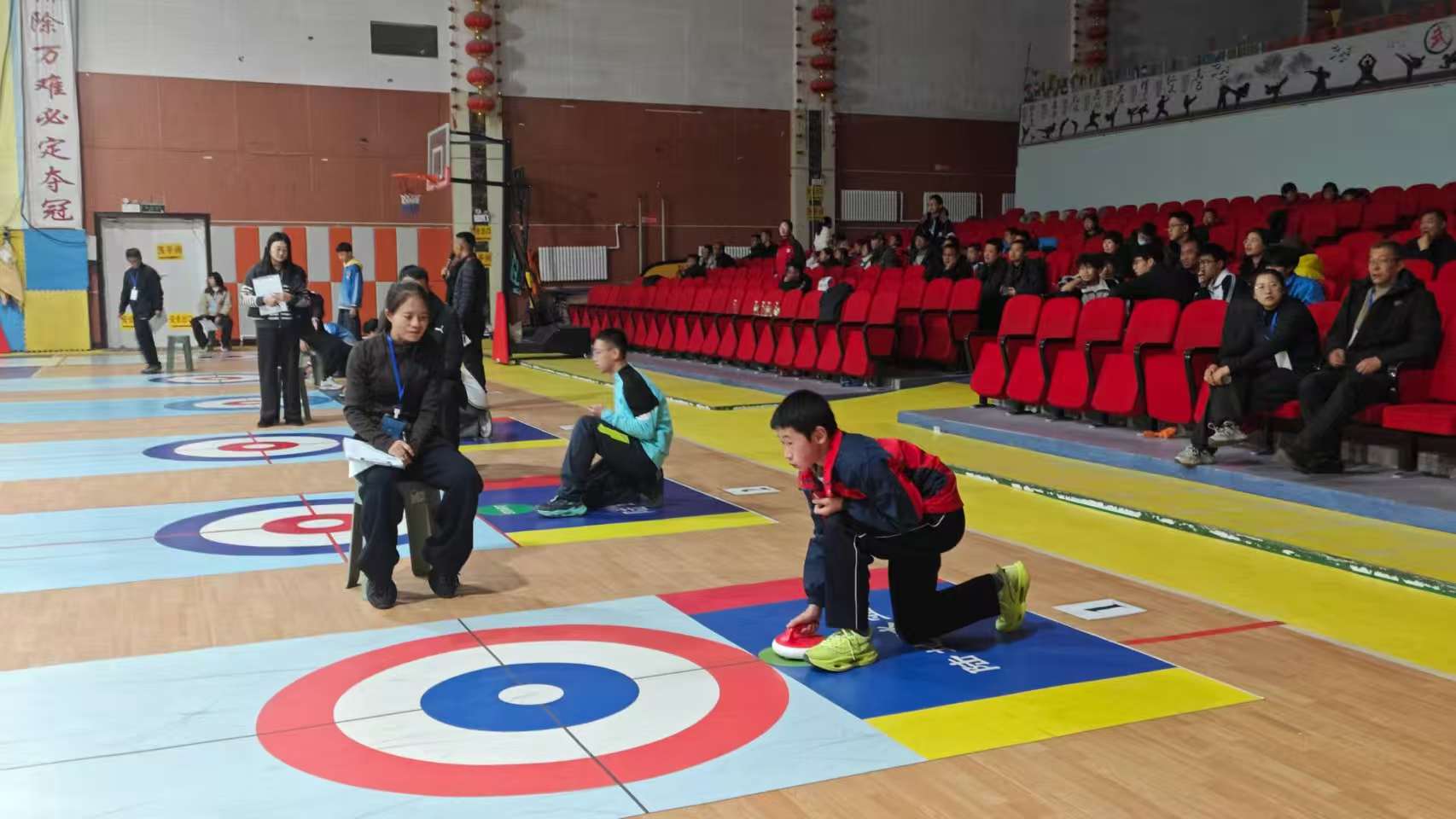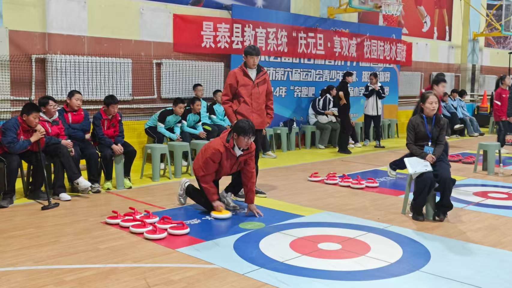 冬日的景泰大地,运动热情似火。近日,景泰县教育局举办“庆元旦·享双减”校园陆地冰壶联赛,来自全县各中小学的200余名师生代表齐聚赛场,展开精彩角逐,共同享受冰壶比赛带来的快乐。