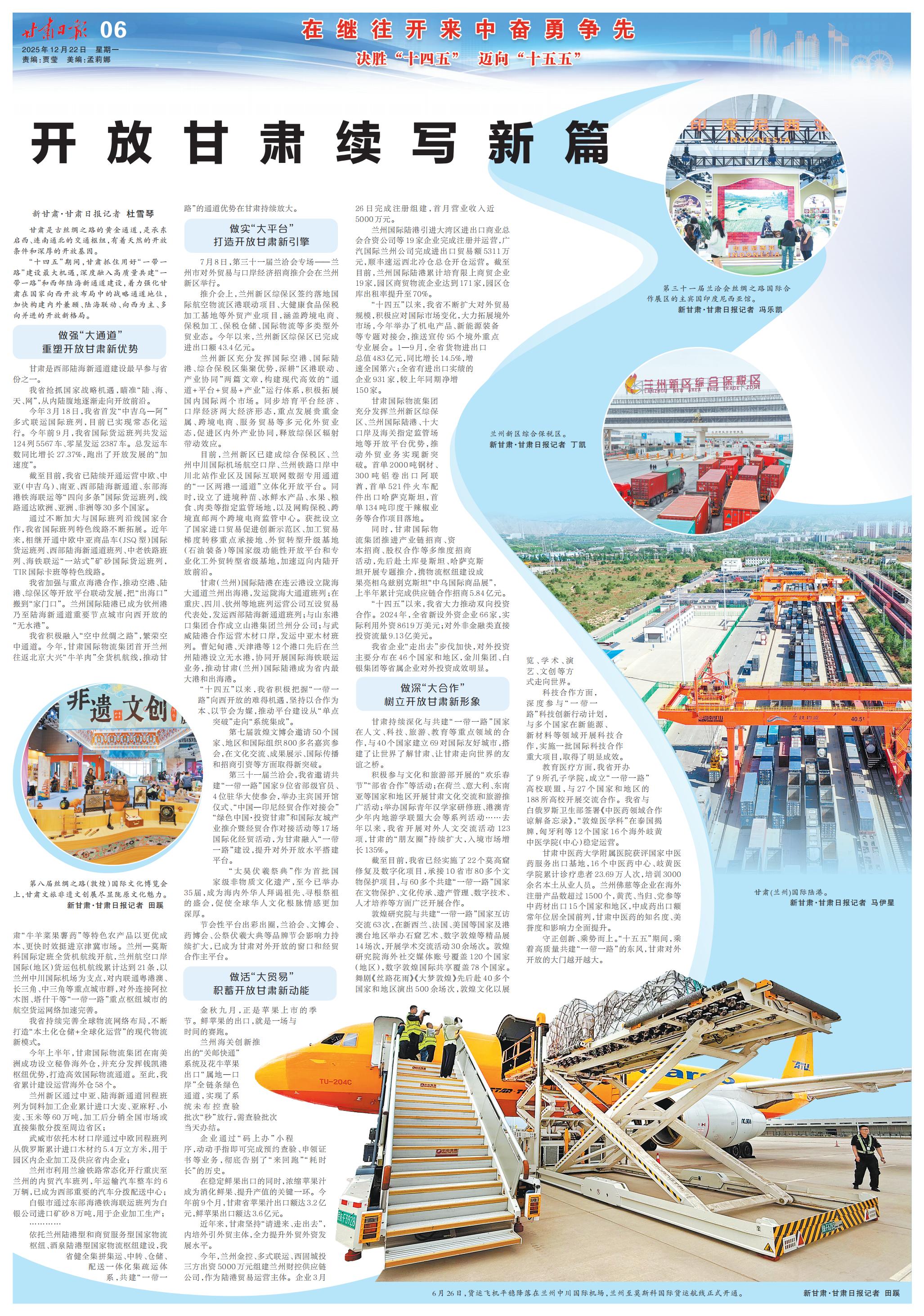 守正创新、乘势而上。“十五五”期间,乘着高质量共建“一带一路”的东风,甘肃对外开放的大门越开越大。