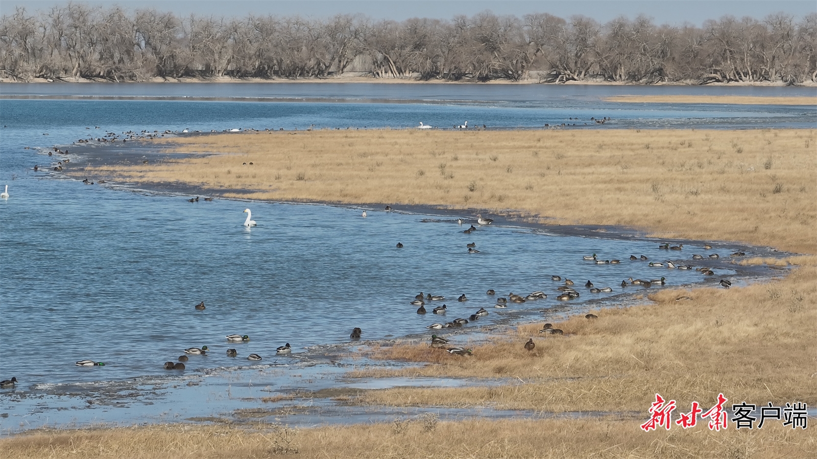 敦煌阳关湿地绿头鸭等越冬候鸟。新甘肃·甘肃日报通讯员 赵晓语 摄