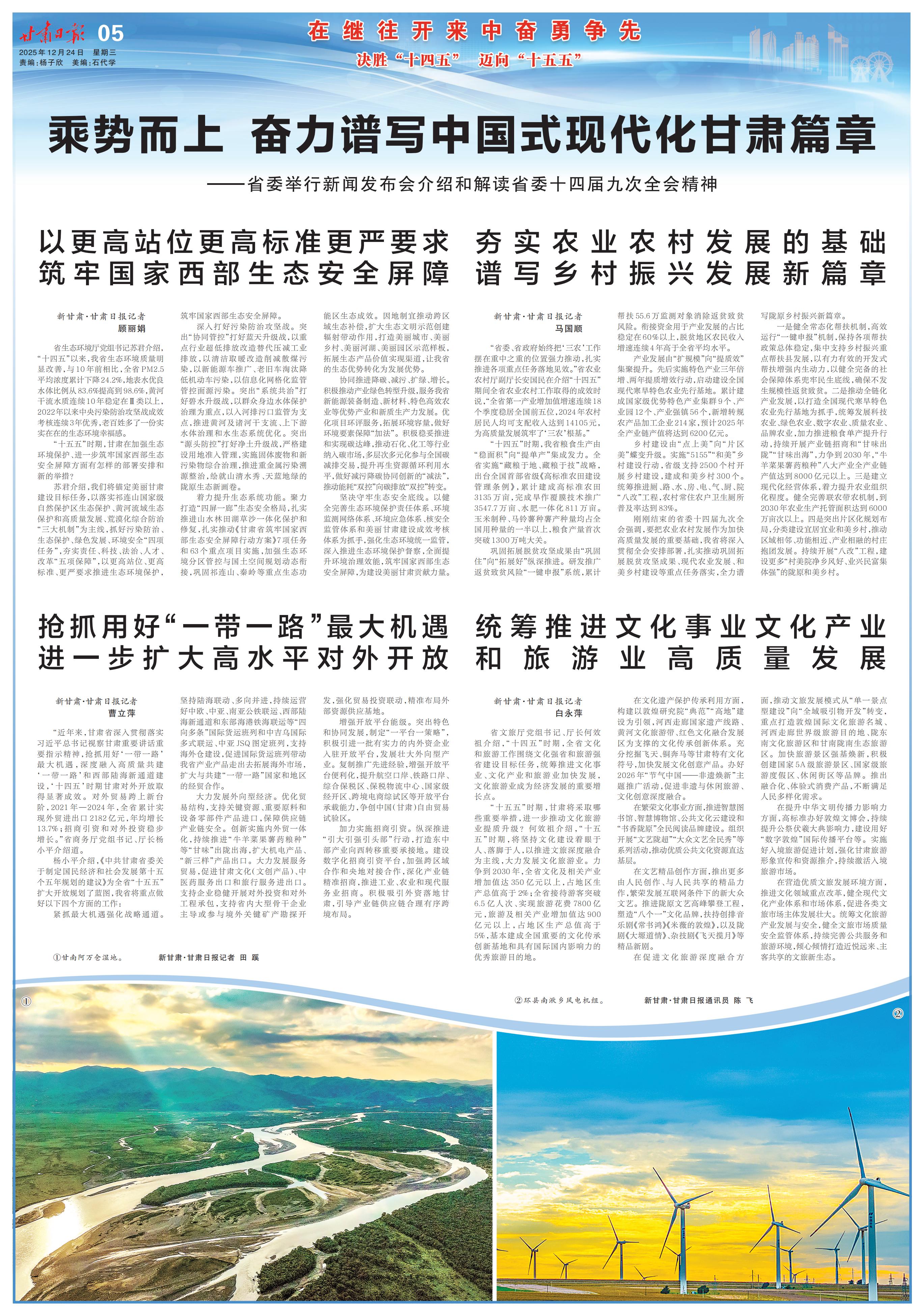 “省委、省政府始终把‘三农’工作摆在重中之重的位置强力推动,扎实推进各项重点任务落地见效。”省农业农村厅副厅长安国民在介绍“十四五”期间全省农业农村工作取得的成效时说,“全省第一产业增加值增速连续18个季度稳居全国前五位,2024年农村居民人均可支配收入达到14105元,为高质量发展筑牢了‘三农’根基。”