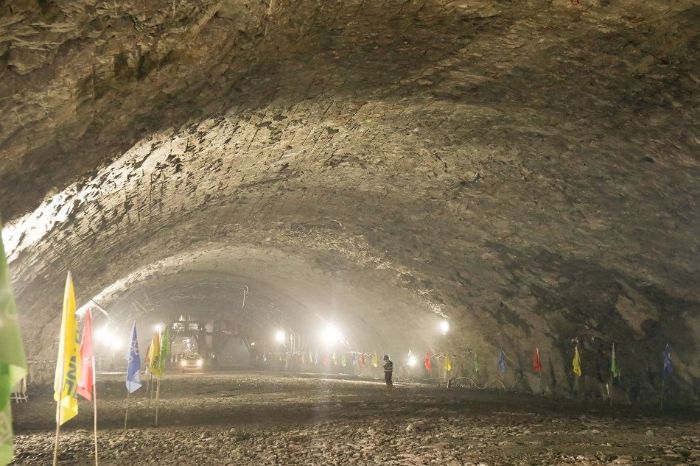 作为电站的“能量转换中枢”,长248.5米、宽28.2米、高59.6米的地下厂房规模宏大、结构复杂,施工难度居于国内同类工程前列。面对岩性多变、断层发育的复杂地质条件,项目建设团队以创新为钥,破解施工难题,坚持技术引领,科学配置资源,实施了一系列针对性举措:在支护环节采用超前支护,综合运用深孔随机锚杆、随机锚索等技术;构建“锚杆+钢筋网+喷射混凝土”联合支护体系,并对钢筋绑扎、网片铺设、混凝土喷射等工序进行精准测算与现场核验,实行全流程精细化管控,确保施工安全与质量。