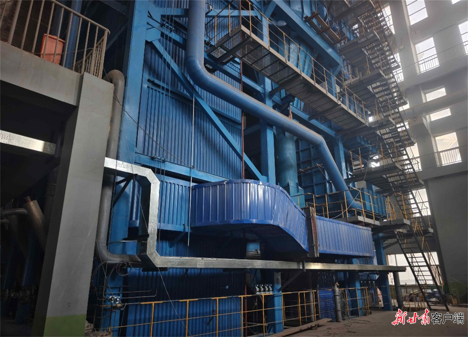 庄浪县恒温热力公司的锅炉房内新建的100蒸吨锅炉。
