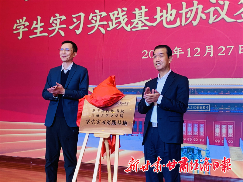 新甘肃客户端兰州讯(新甘肃·甘肃经济日报记者 牛占虎)12月27日,兰州大学文学院与龙王池四库书院共建学生实习实践基地协议签署及揭牌活动在永登县龙王池四库书院礼乐殿堂举行。此举标志着双方在推动中华优秀传统文化传承创新、深化院企协作、构建产学研一体化育人平台方面迈出实质性步伐。