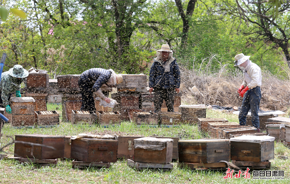 庆阳市西峰区什社乡文安村蜂农收获蜂蜜。新甘肃·每日甘肃网通讯员 盘小美