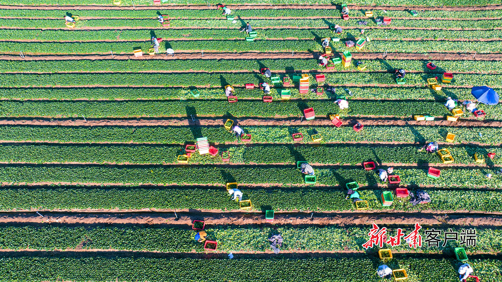 张掖市甘州区上秦镇万亩蔬菜基地,菜农正在抢收菜心。新甘肃·甘肃日报通讯员 杨永伟