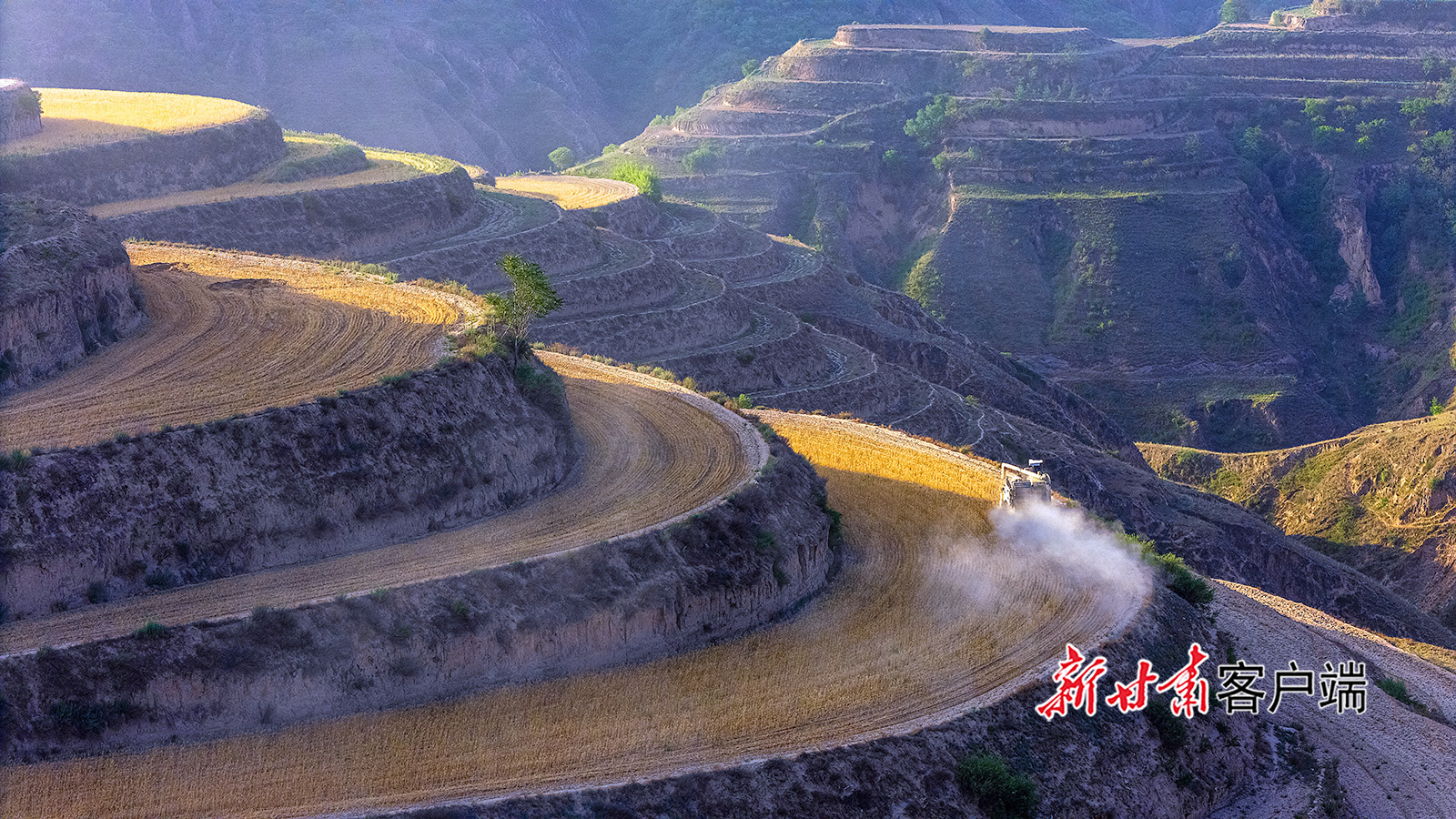 镇原县方山乡十八岘村的梯田一片金黄,农户抢抓农时收割小麦。新甘肃·甘肃日报通讯员 王启宁
