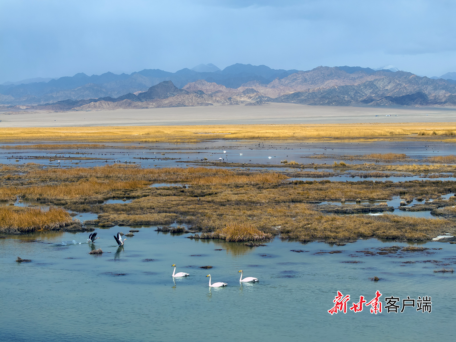 四月,阿克塞县大、小苏干湖湿地冰雪融化,鸟儿如期而至。新甘肃·甘肃日报通讯员 高宏善