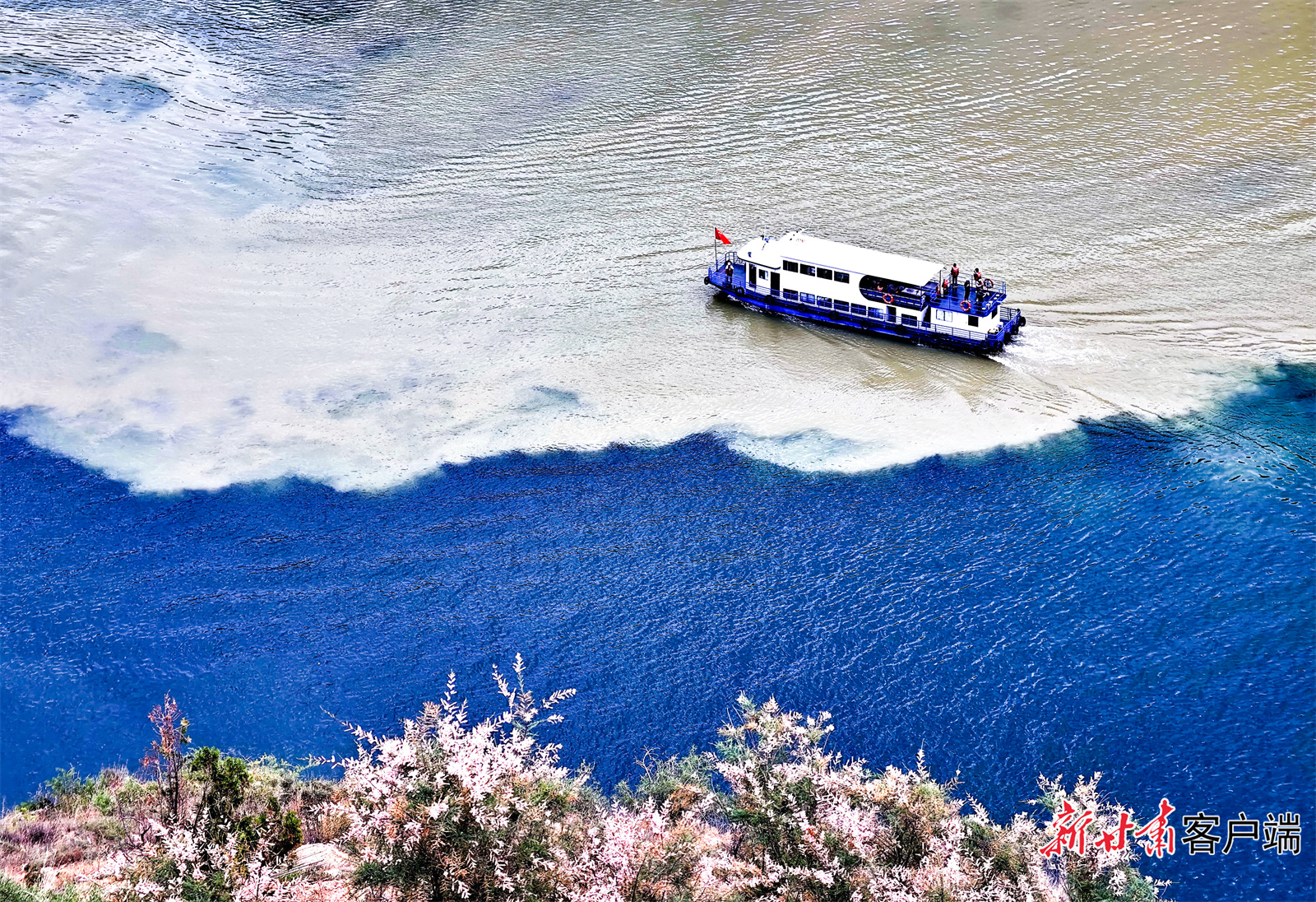 盛夏时节,永靖县刘家峡水库库区附近黄河与洮河交汇,形成“泾渭分明”的自然奇观,吸引众多游客与摄影爱好者前来观赏、拍摄。新甘肃·甘肃日报记者 马伊星