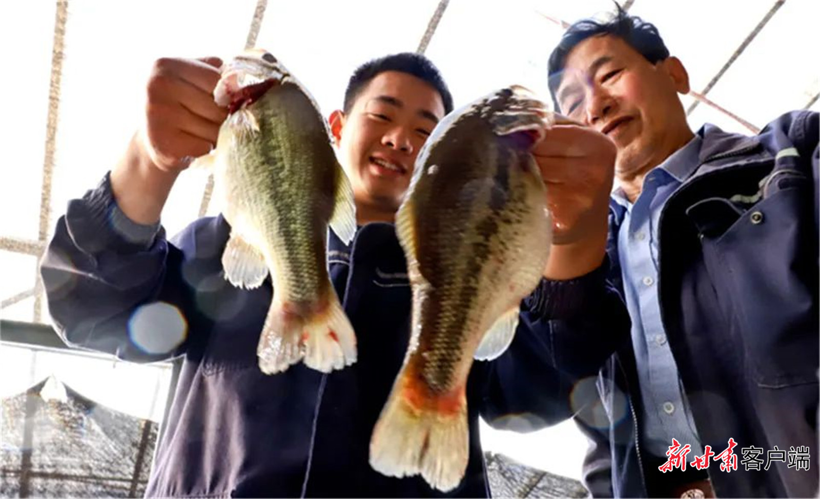 张掖市丰森养殖农民专业合作社工作人员在观察鲈鱼生长状况。
