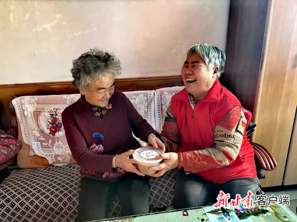 金冶里社区“银发婆婆”志愿服务队的志愿者为独居老人送上热粥。本文图片均由金冶里社区提供