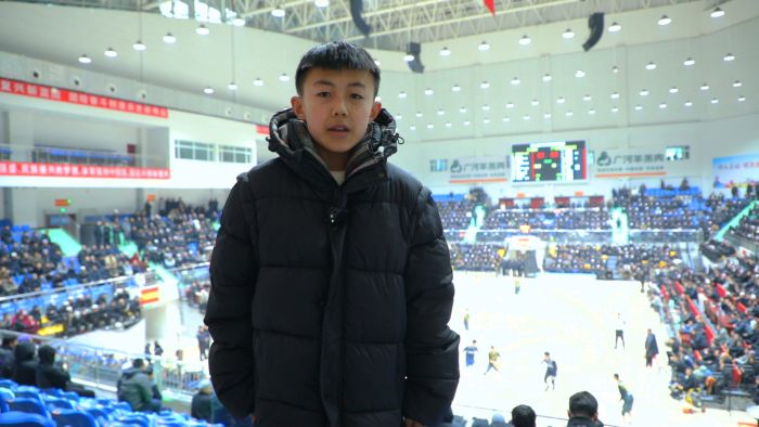 现场球迷 马林:两支队非常强悍,比分也咬得很紧。但是我个人喜欢雪域雄鹰队。因为我在拉萨的时候一直看着这个队,雪域雄鹰虽然输了,但是我对雪域雄鹰是很热爱的,不管他们止步哪一强,我依然是很喜欢他们。对我们年轻人来说,这不仅是一场比赛,更像是元旦期间的一个热血派对。