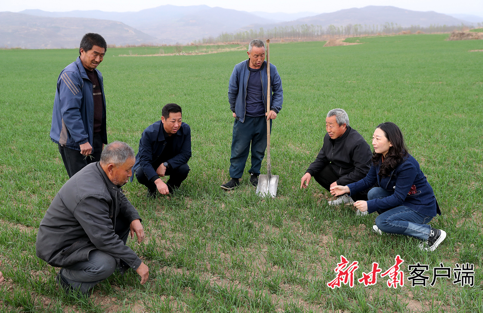 清水县种子管理站站长杨国权和当地村民一起查看麦种长势。
