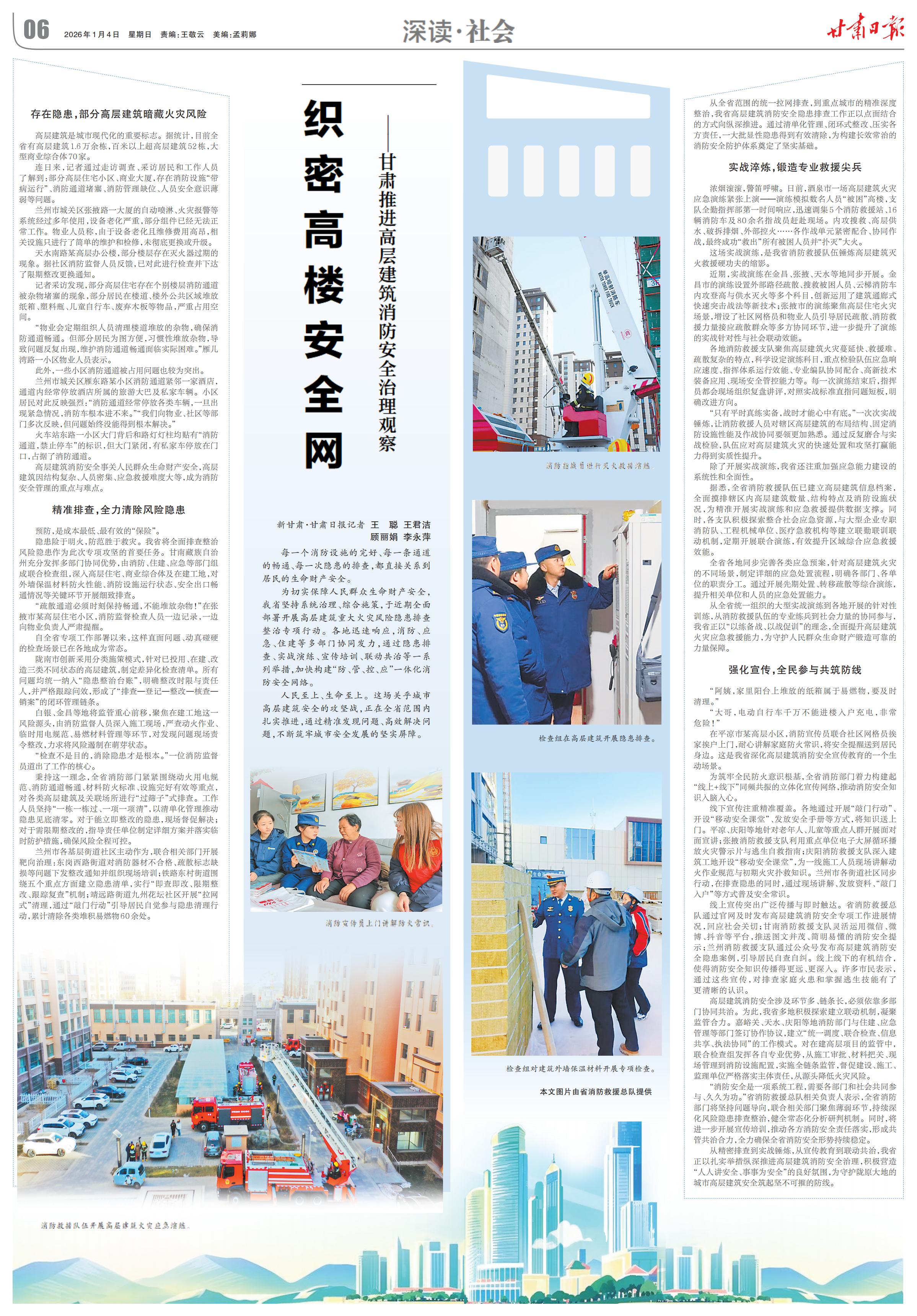 从精密排查到实战锤炼,从宣传教育到联动共治,我省正以扎实举措纵深推进高层建筑消防安全治理,积极营造“人人讲安全、事事为安全”的良好氛围,为守护陇原大地的城市高层建筑安全筑起坚不可摧的防线。