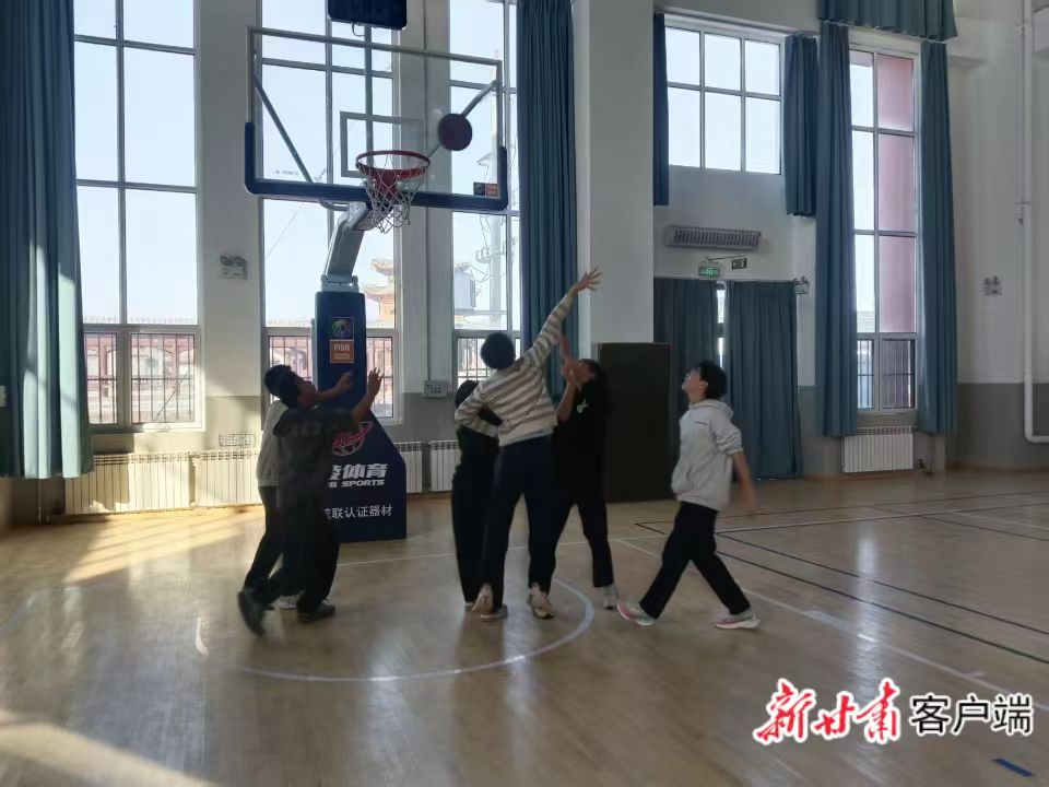 永昌县第五中学学生在风雨操场上打篮球。本文图片均由金昌市教育局提供