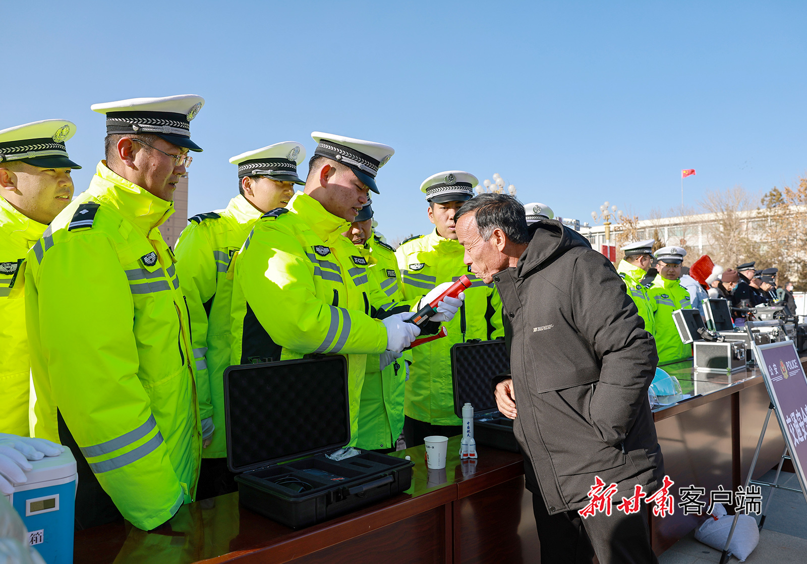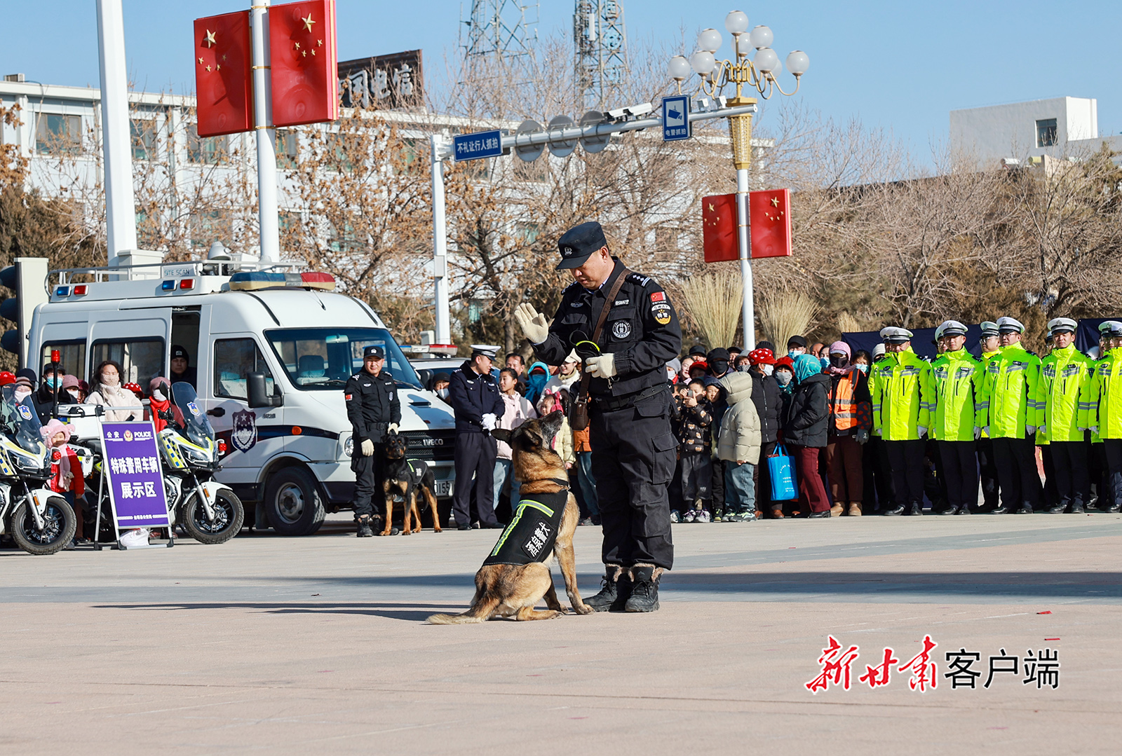 1月8日,金塔县在航天广场举行第六个中国人民警察节警营开放日活动暨110主题宣传活动。活动现场,市民零距离体验警务装备、观看警务技能表演,拉近警民距离。