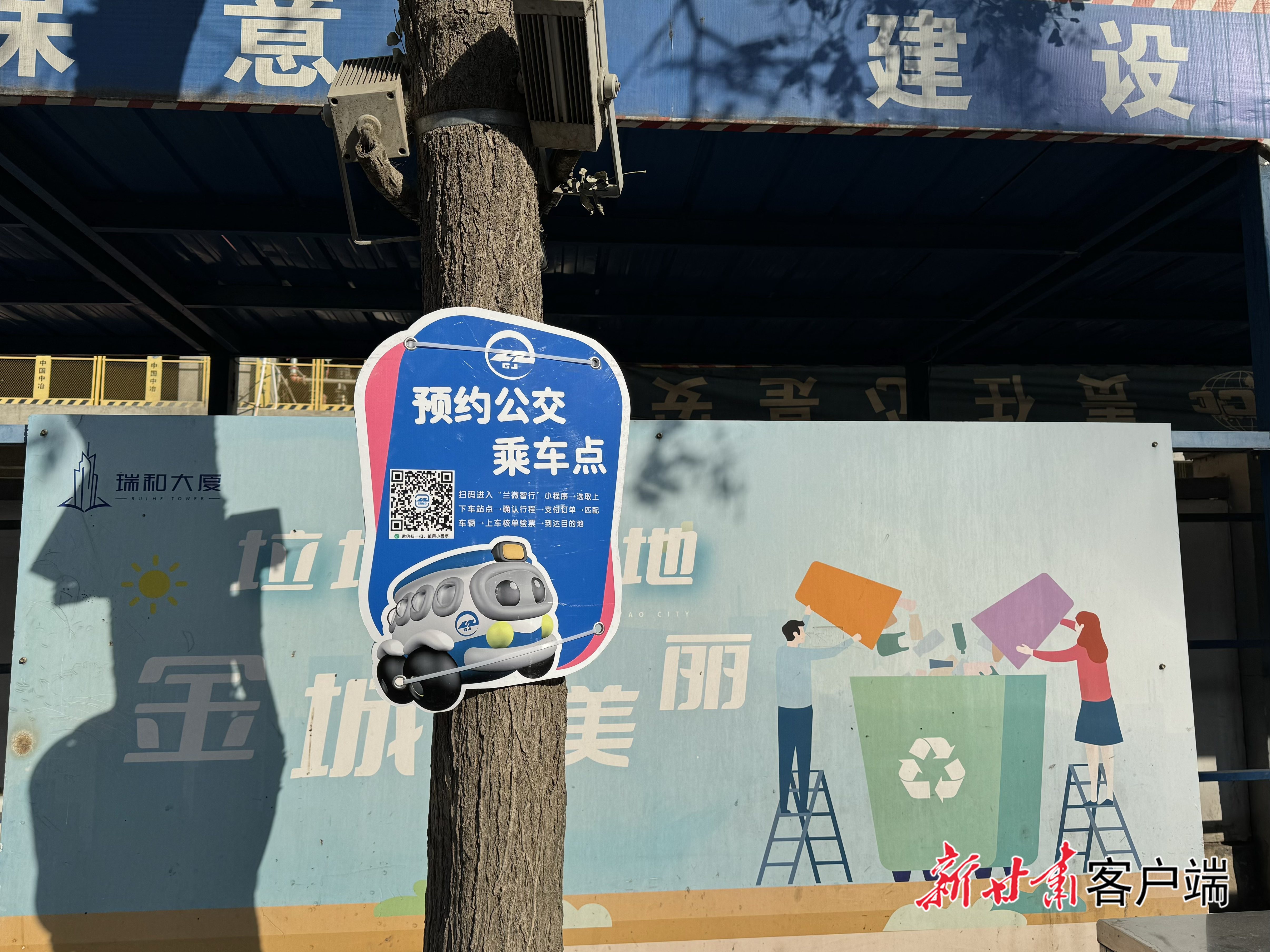 在培黎广场网约公交专用标识牌旁,记者通过手机小程序,预约了一趟前往兰州植物园的“网约公交”。