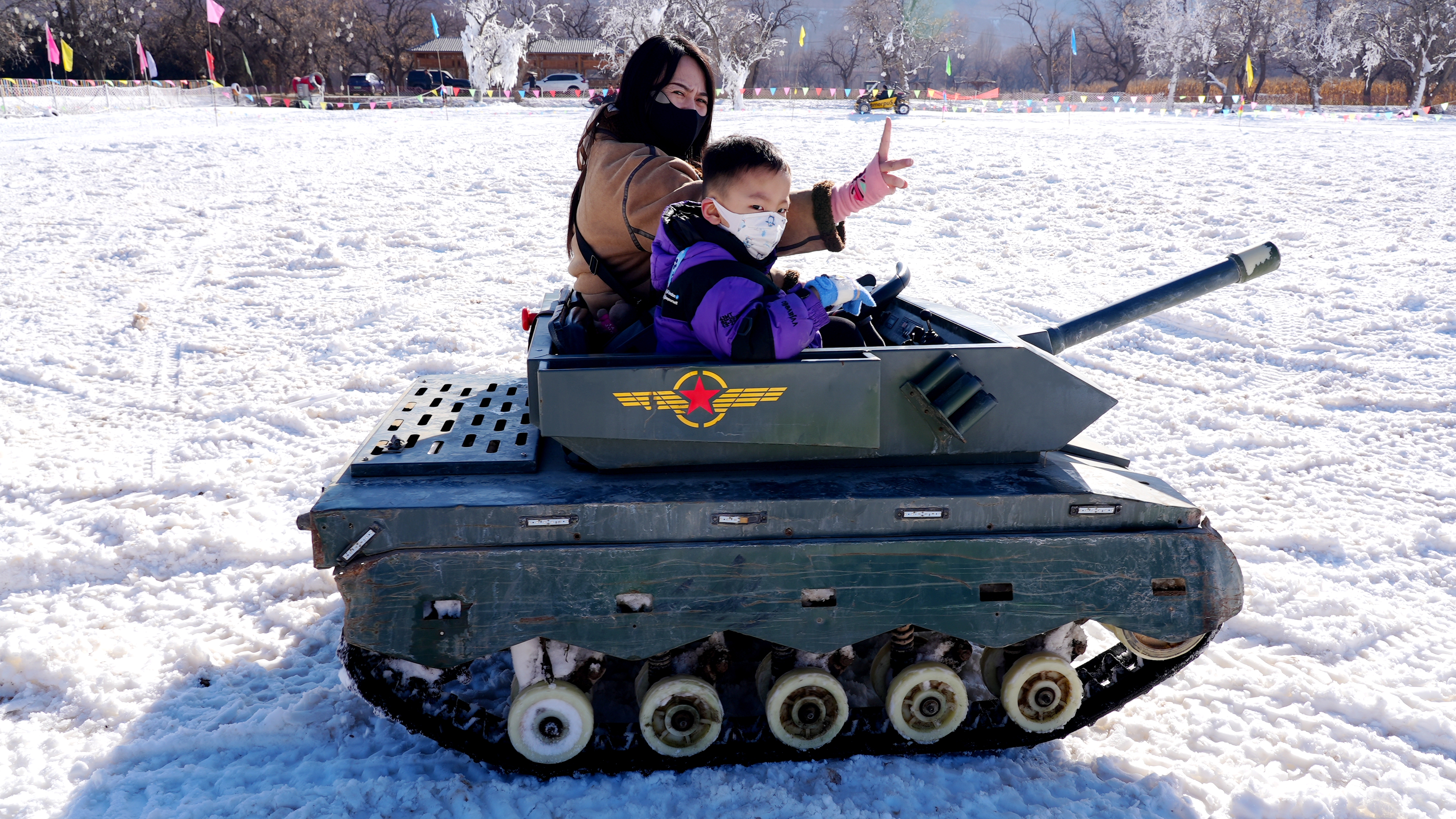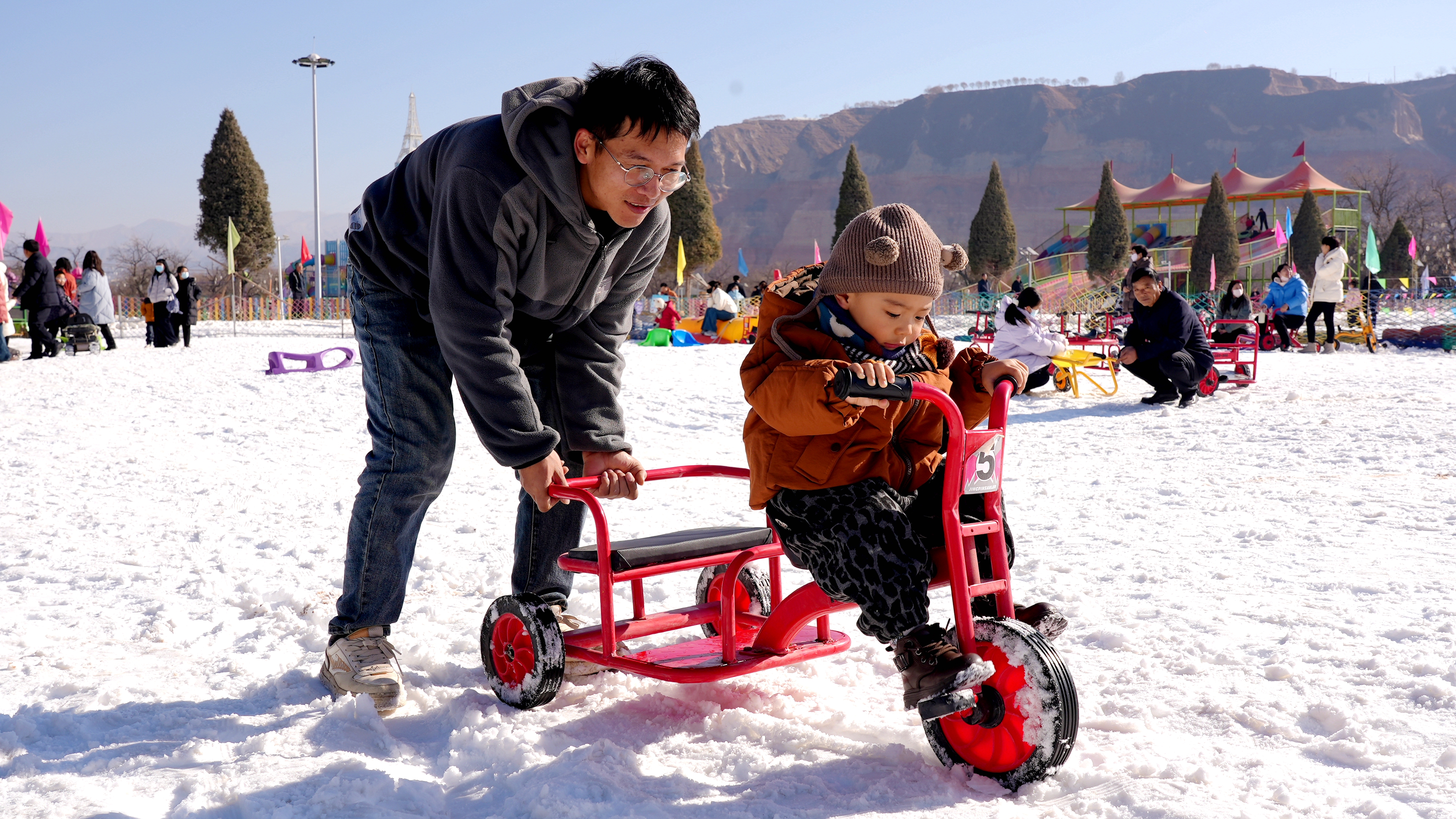兰州游客 张亚霞:我们是从兰州过来的,专门带小孩来到这边玩。刚才领他玩了两次雪圈,就感觉特别刺激。玩的项目真的很多,有卡丁车、摩托车,推荐大家来玩吧!