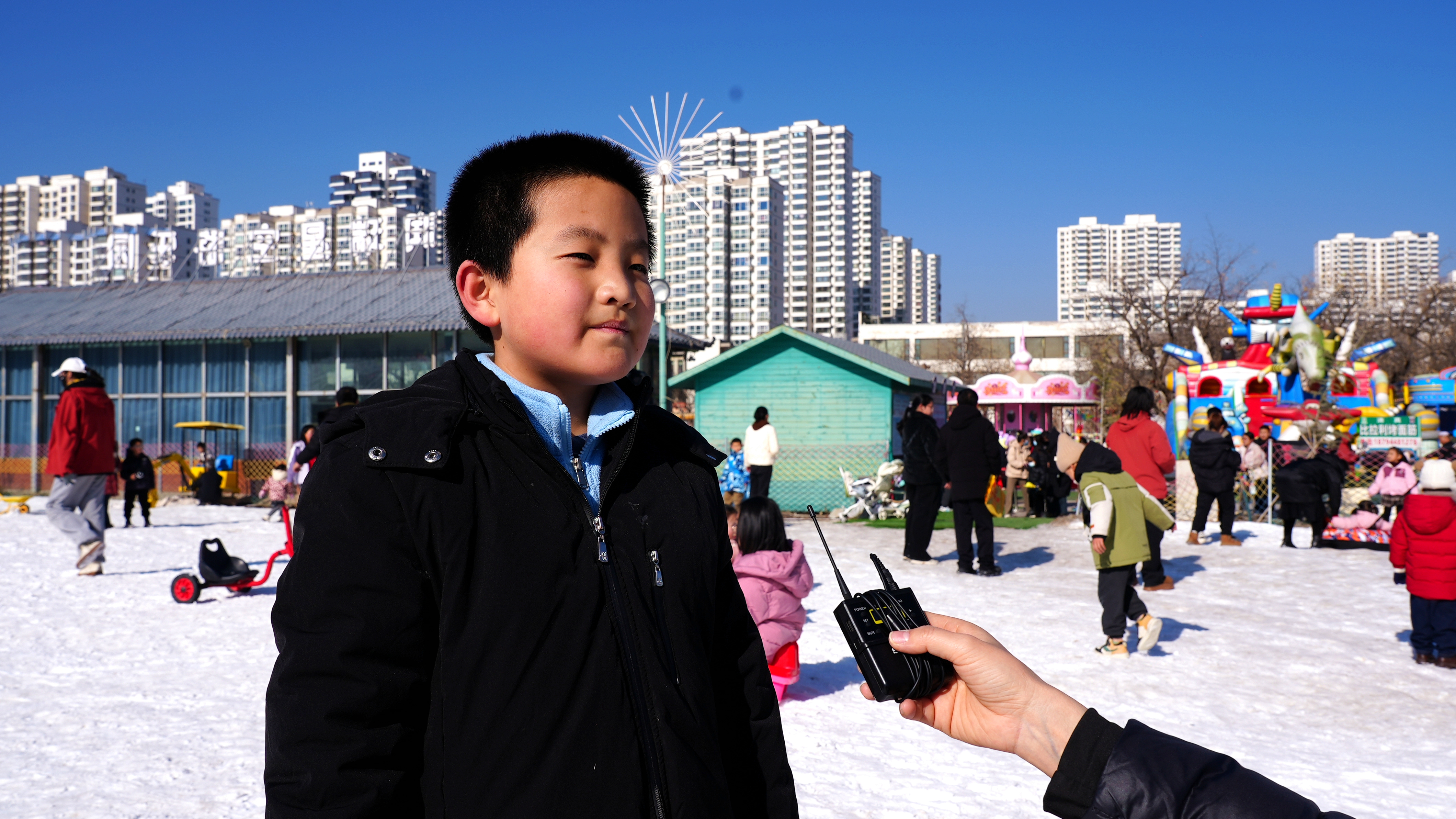 小游客 罗毅:今天我的姑姑带我来玩雪,我玩了雪地冲锋舟,太刺激了!我还想再玩一次!