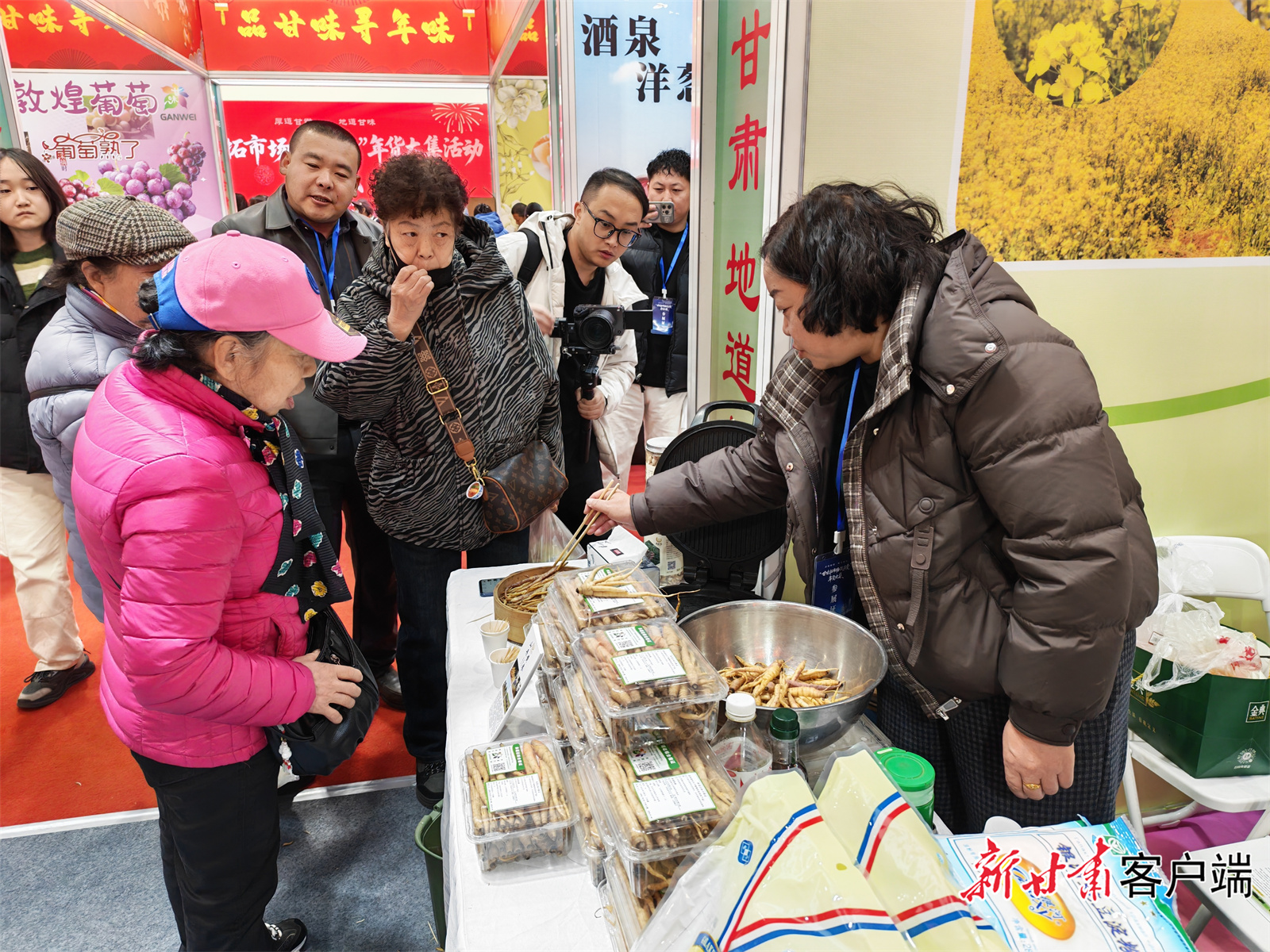 活动现场暖意融融,2000平方米的展区内,省内各市州及甘肃农垦集团的特色展销区依次排开,180多家企业带来的2300多种“甘味”农产品整齐陈列,从生鲜肉品到粮油米面,从特色果蔬到加工食品,涵盖了日常饮食的方方面面,让前来采购的市民目不暇接。