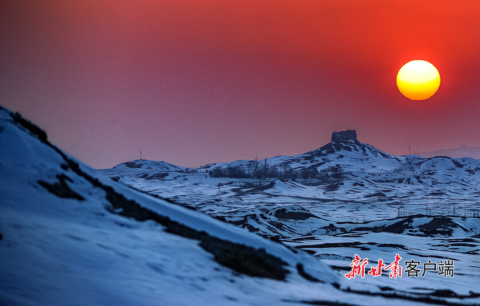 近日,一轮红日从敦煌市阳关遗址的烽燧背后缓缓沉入地平线,勾勒出“长河落日圆”的壮美画卷。新甘肃·甘肃日报通讯员 王斌银 周玉玲