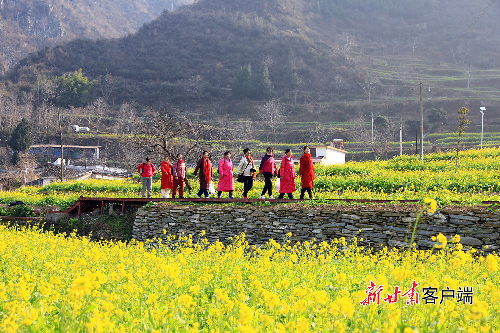 1月11日,文县玉垒乡玉垒坪村的油菜花将细碎的金黄缀满原野,成了冬日里最鲜活的亮色,吸引游客前来赏景拍照。新甘肃·甘肃日报通讯员 后斌玉