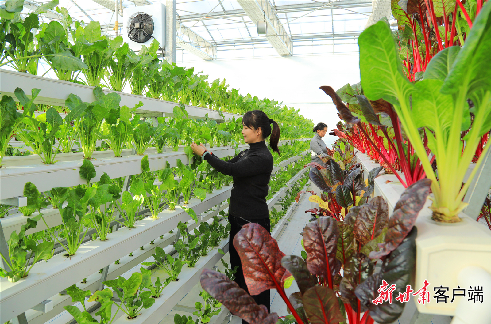 近日,徽县泥阳镇金徽农业蔬菜种植产业园工作人员在智能温室管护无土栽培蔬菜。新甘肃·甘肃日报通讯员 李旭春
