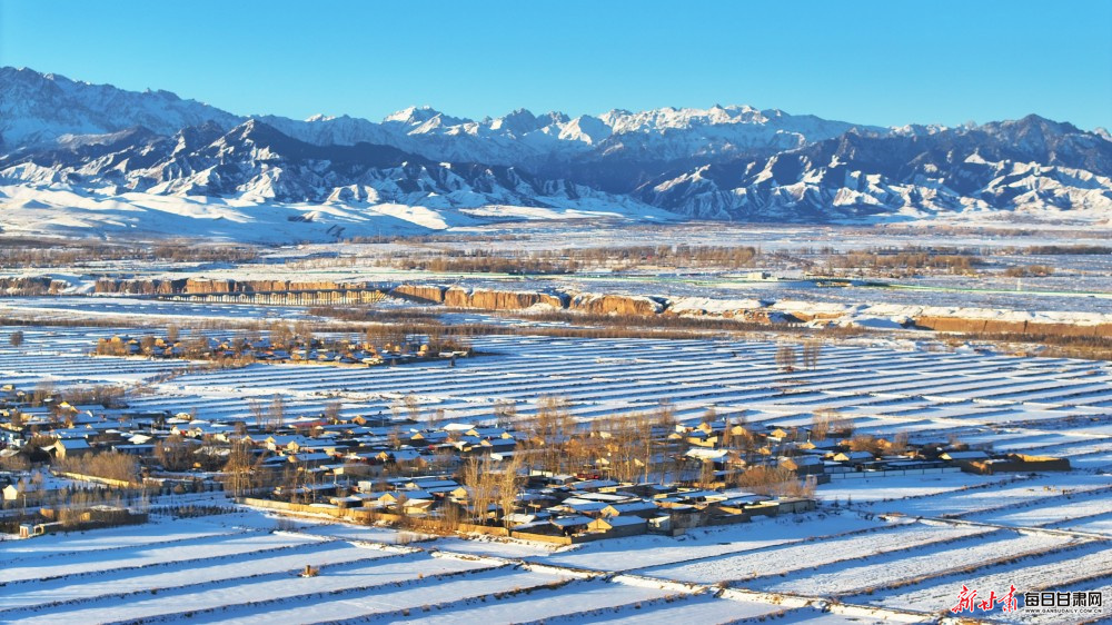 1月12日,俯瞰张掖市民乐县,在壮丽的雪山映衬下,一幅生态优美、产业兴旺的乡村振兴画卷正徐徐展开。新甘肃·每日甘肃网通讯员 王晓泾 喇勇