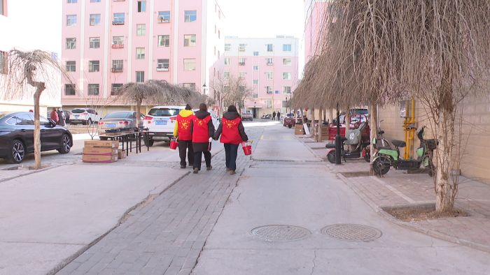 1月14日,冬日暖阳洒在天锦苑社区。在永昌县城关镇天锦苑社区2号小区,几位工作人员正架着梯子,细心梳理着空中交错的线缆,昔日杂乱的“蜘蛛网”逐渐变得规整。楼道里,堆积多年的旧家具、纸箱被逐一清运,公共空间“豁然开朗”。万安花园小区里,社区工作人员正拿着宣传彩页为居民讲解着,笑声与交谈声交织,暖意融融。