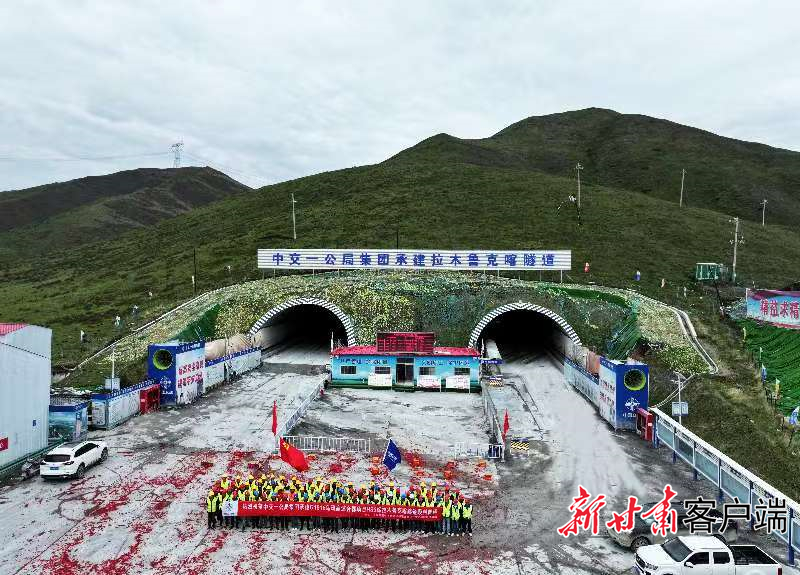 高速公路合作至赛尔龙(甘青界)段建设项目拉木鲁克喀隧道双洞贯通现场。甘南州投资与合作交流局供图