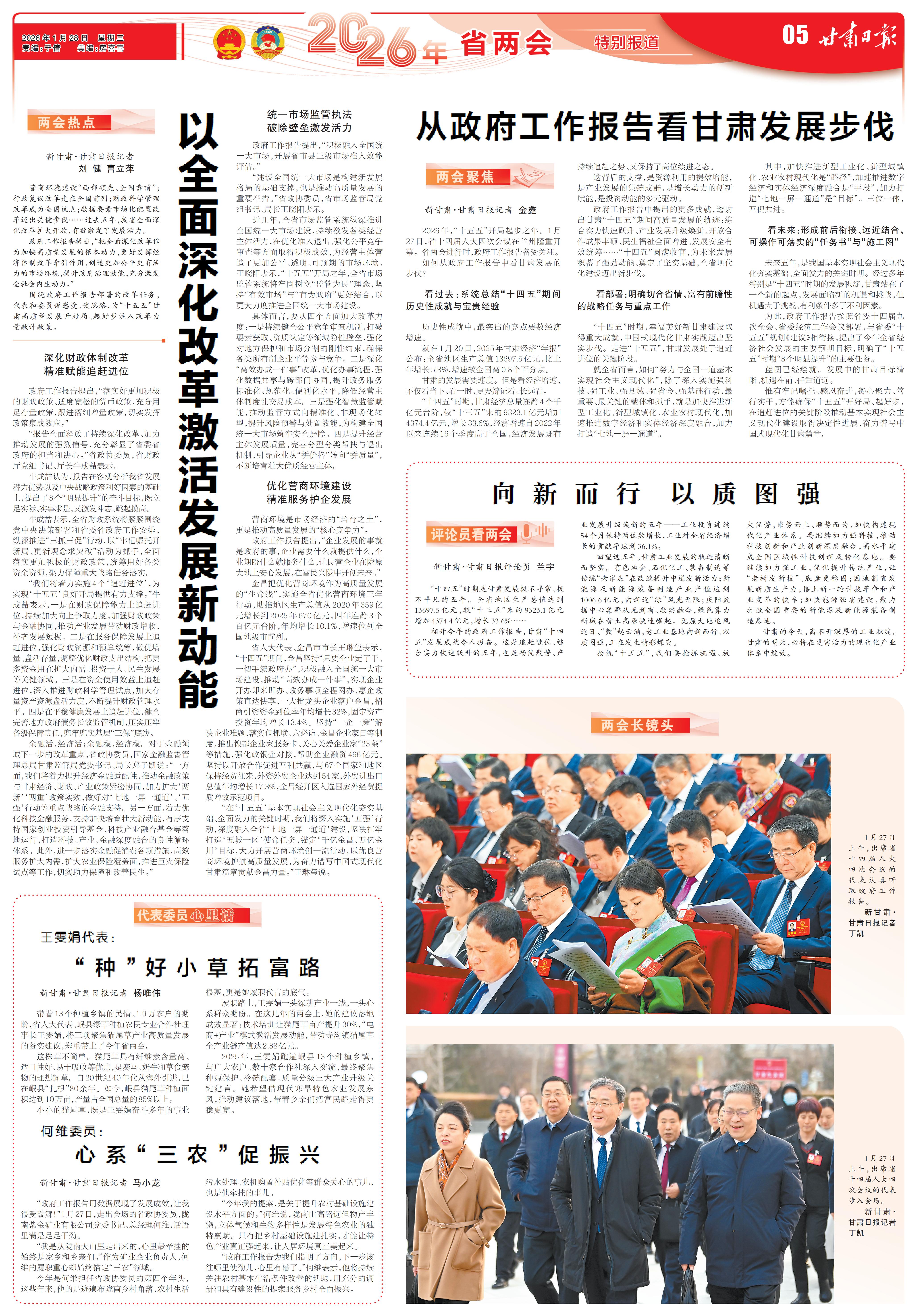 2026年,“十五五”开局起步之年。1月27日,省十四届人大四次会议在兰州隆重开幕。省两会进行时,政府工作报告备受关注。