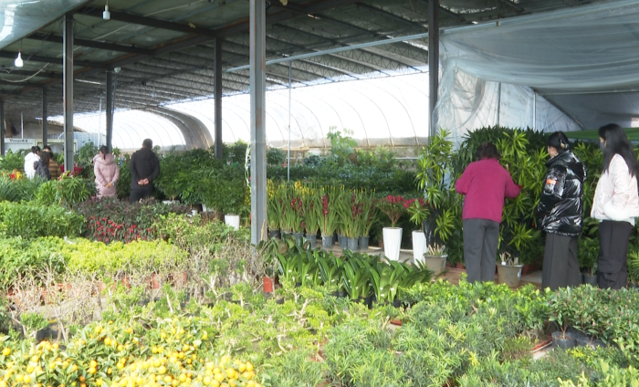 新泰花卉基地负责人姚全说:“我们花圃已经经营十多年了,靠着口碑积累了不少老顾客。临近过年,来选购花的顾客也很多,目前,店里销量最好的几乎就是开花的品种,平安树、吉祥树,不仅寓意吉祥,价格还特别实惠。店里还搭配了花土、花肥等养护(用品),方便顾客一站式选购。冬天是购买绿植的好时机,植物冬季处于休眠期,蒸腾作用弱、成活率高,买回去也比较省心。”