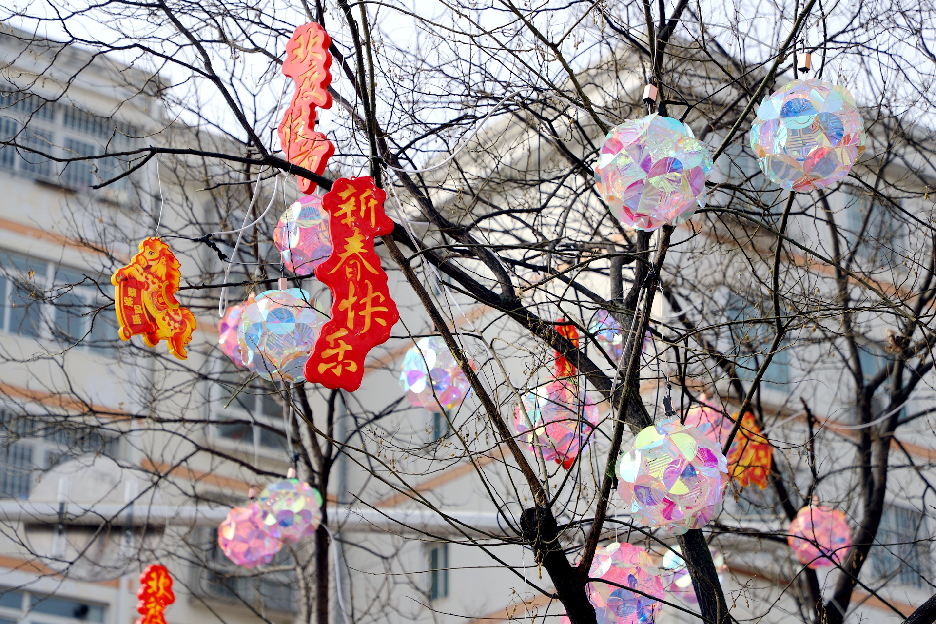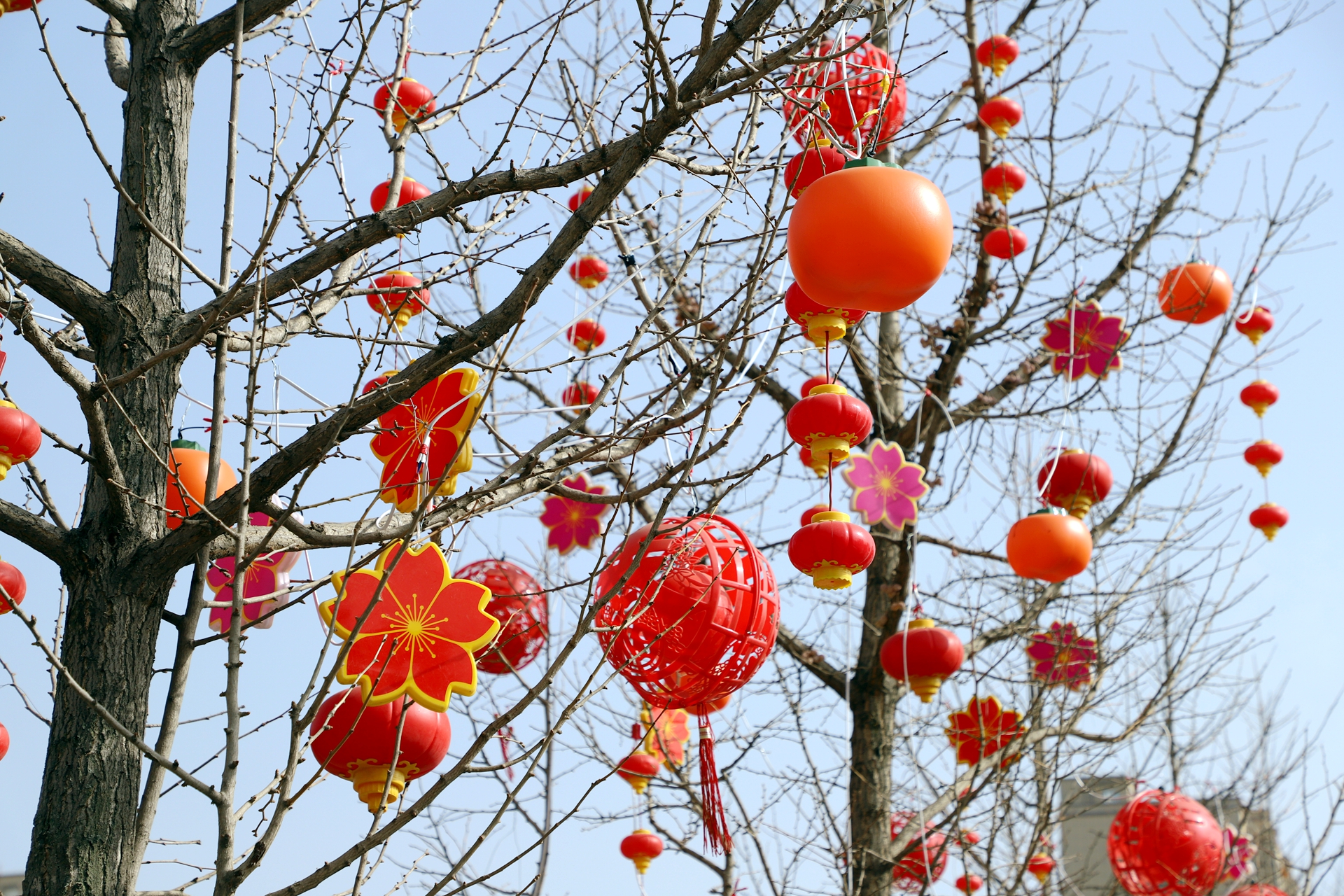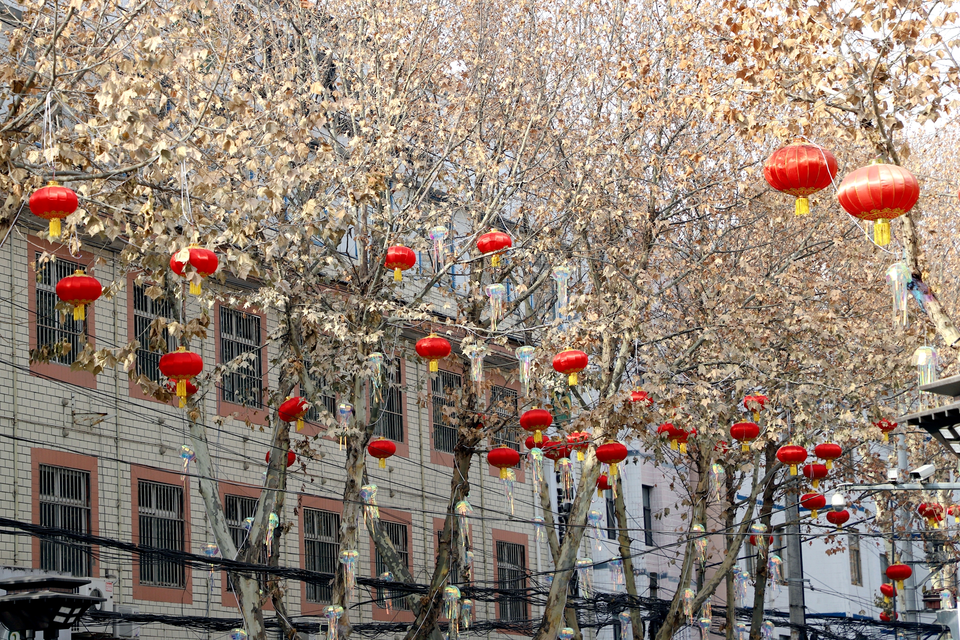 漫步城区主干道,仿佛徜徉于光影的河流。道路两旁的树枝上,万千灯饰争奇斗艳:象征吉祥圆满的大红灯笼高悬,红彤彤的灯身配以飘逸的金穗,与冬日的枝桠相映成趣;晶莹剔透的彩球灯、灵动梦幻的水母灯,折射出五彩斑斓的光芒,宛若星河落凡间;绘制着“马到成功”“新春大吉”等祝福语和卡通骏马图案的文字灯,传递着真挚的祈愿;造型别致的星月灯、花朵灯、柿子灯,寓意着浪漫、芬芳与“柿柿如意”;还有那红色小灯笼串成的“糖葫芦”灯串,与镂刻着“春”“福”字样的红色球形灯,将传统韵味与现代设计巧妙融合,处处洋溢着欢腾与喜悦。