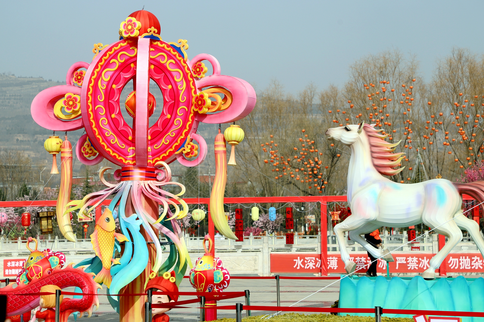 轩辕广场与充国广场内,大型落地装置灯组备受瞩目。由联排灯笼组成的巨型灯笼墙,辉映着对全县人民深情的新春祝福;蕴含马年吉祥寓意的卡通形象灯组,活泼可爱,吸引众多市民驻足合影。轩辕湖公园的民俗花灯展也正火热进行中,各式花灯集中亮相,成为清水花灯景观的点睛之笔。这些规模宏大的灯景,不仅提升了城市的夜景颜值,更聚拢了人气与欢声笑语,烘托出团圆、欢庆的浓厚氛围。
