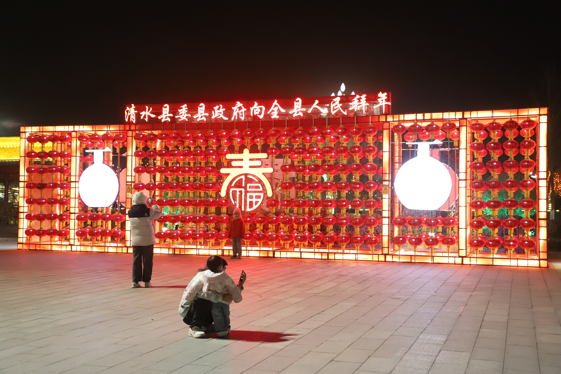满城花灯,不仅是清水城冬日里最亮丽的风景线,更是传统文化与新春温情的交融,让年味在光影中浸润人心,也让民俗文化的韵味在轩辕故里代代传承。这一抹抹喜庆的红,也为清水县2026年新春系列活动营造出浓厚的节日氛围,让“赏花灯、购年货、泡温泉、品美食”的主题愈发鲜明,为全国“四季村晚”示范展示活动的启幕预热造势。