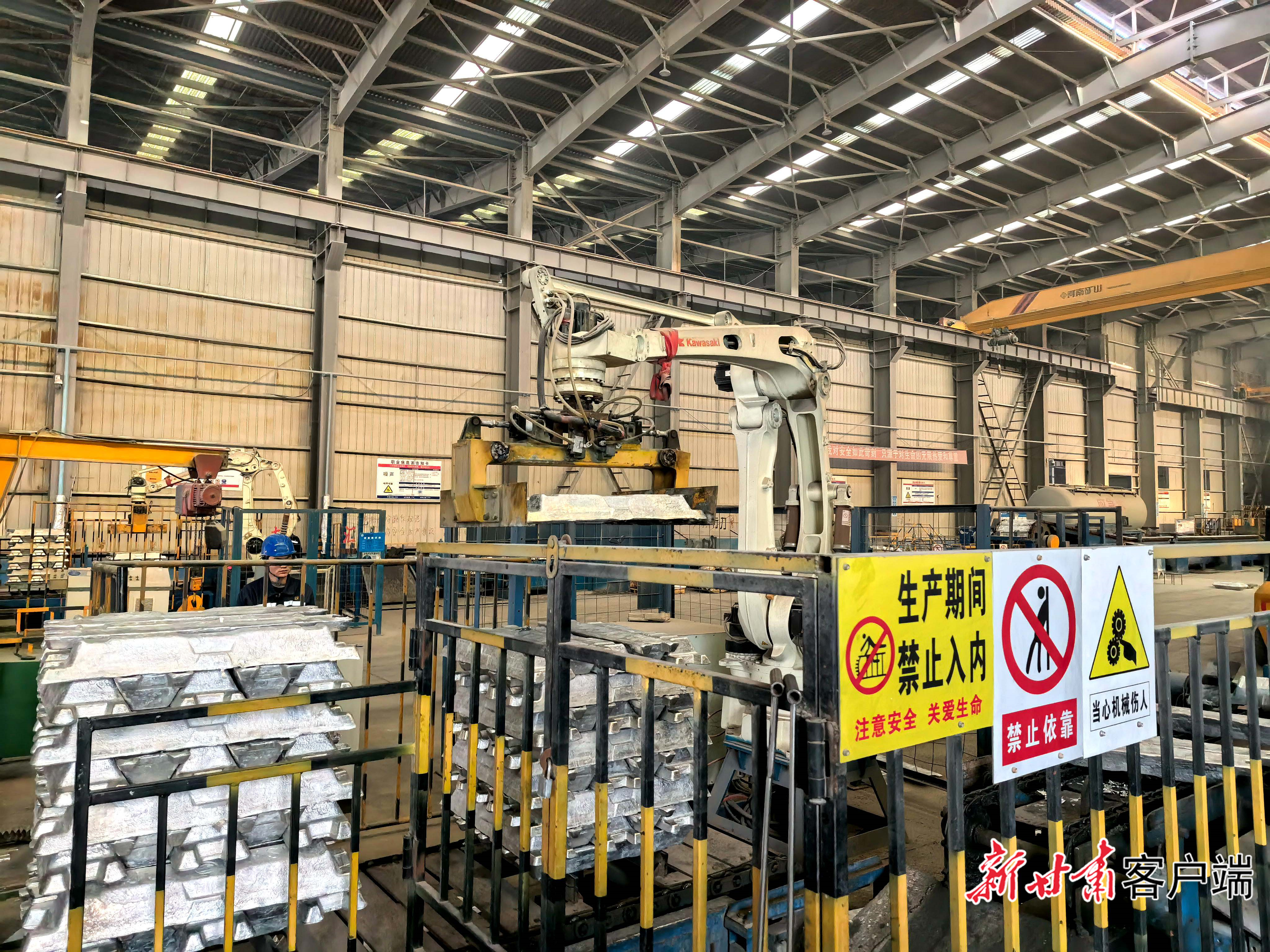 新年伊始,白银刘川工业集中区,甘肃中瑞铝业有限公司铸造车间,马力全开。一槽槽铝水,在生产线上转化成白色的重熔用铝锭,降温后,由机器人码垛、打捆,随即出厂、发运。