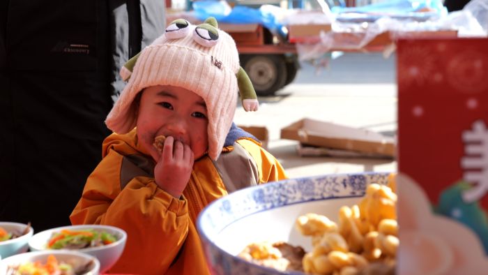 羊肚菌、藜麦等农特产品包装精美,糖果、瓜子、卤味等零食干货摆满货架,居民们穿梭其间,或仔细挑选,或与摊主讨价还价。一旁的美食品鉴互动区更是火爆,糖花子的酥脆、灰豆子的软糯、油饼子卷糕的香甜,让免费试吃的居民赞不绝口。