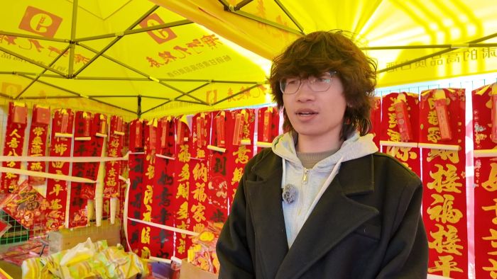 刚走进年货大集,红彤彤的福字、春联就映入眼帘,年货摊摊主雷晖贤正热情地向过往市民推介:“永昌这边的年货节已经开始了,我们这个摊位主要卖些对联、福字,过年的装饰用品之类的,欢迎大家前来采购。”