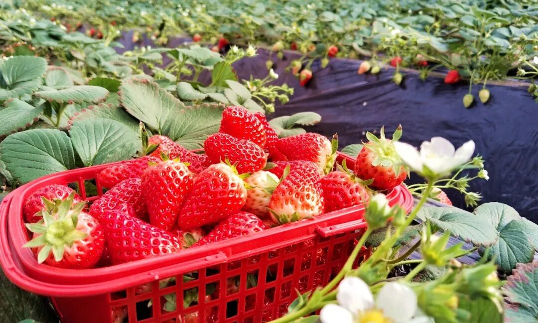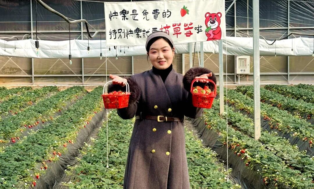 与蓝莓的“蓄势待发”相呼应,产业园内的草莓种植大棚早已是“红果累累”,进入了大规模成熟采收期。棚内温暖湿润,一排排整齐的草莓垄上,绿叶间点缀着无数鲜红欲滴的草莓果实,个头匀称,香气扑鼻。大棚内,游客提着采摘篮穿梭其间,欢声笑语不断,构成了一幅农旅融合的生动图景。这种“田间采摘+即时品尝”的模式,让草莓从“农产品”变身“体验品”,既延长了价值链,也让种植户的“经济账”变成了有温度的“人气账”。