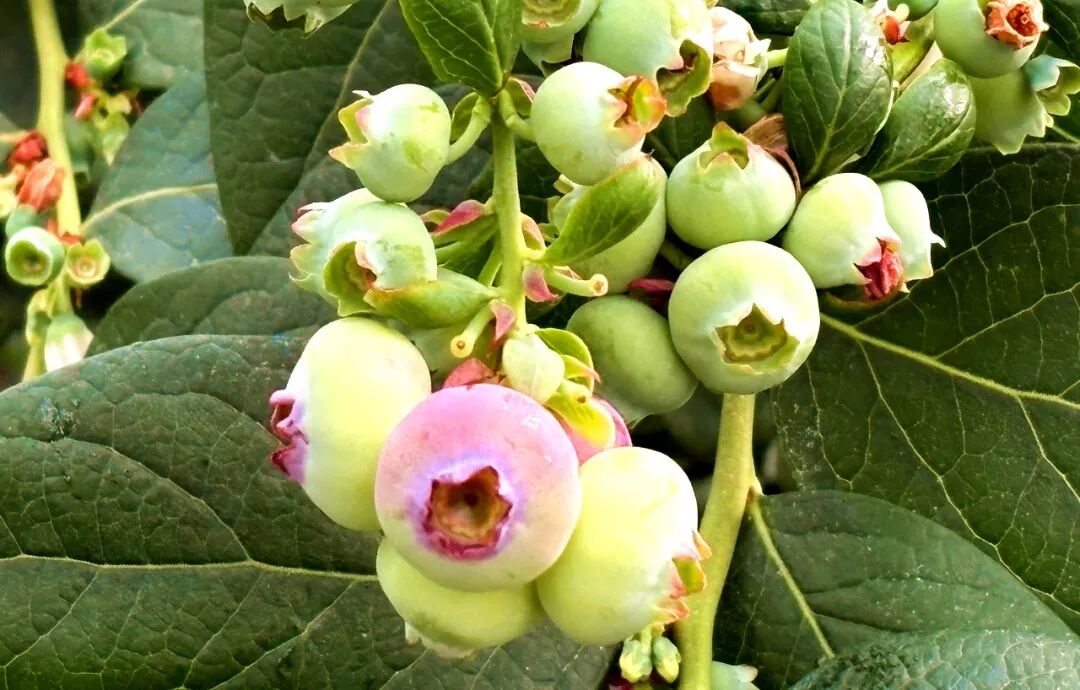 在产业园索迈农业科技的智能玻璃温室内,连片的蓝莓树郁郁葱葱,嫩绿枝叶间,一串串饱满的青涩果实缀满枝头,在智能系统的精准呵护下长势正盛。技术员穿梭其间,记录着果实生长数据,力求每一颗蓝莓都达到“标准的甜”,为“石桥蓝莓”的品牌口碑筑牢根基。