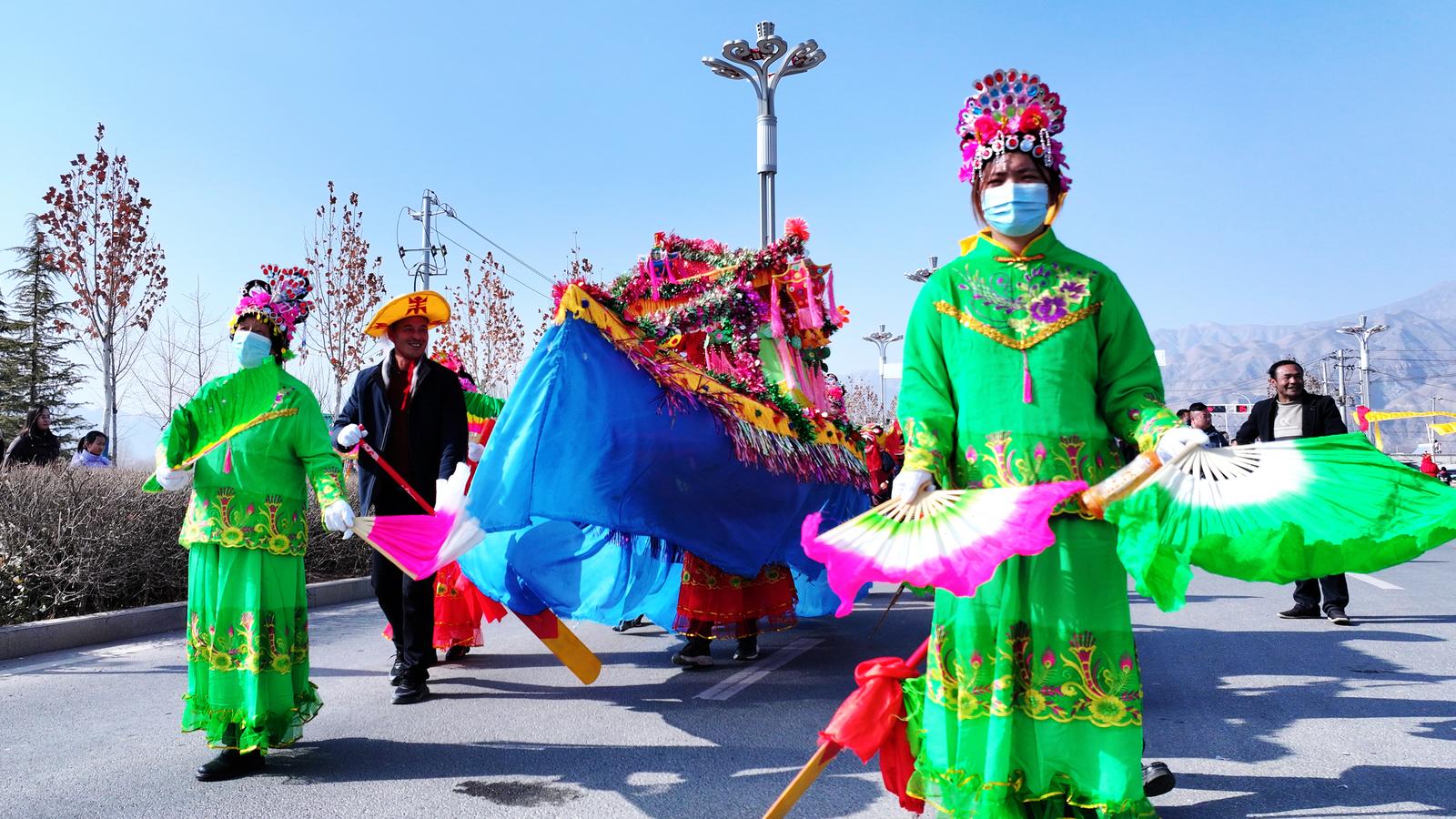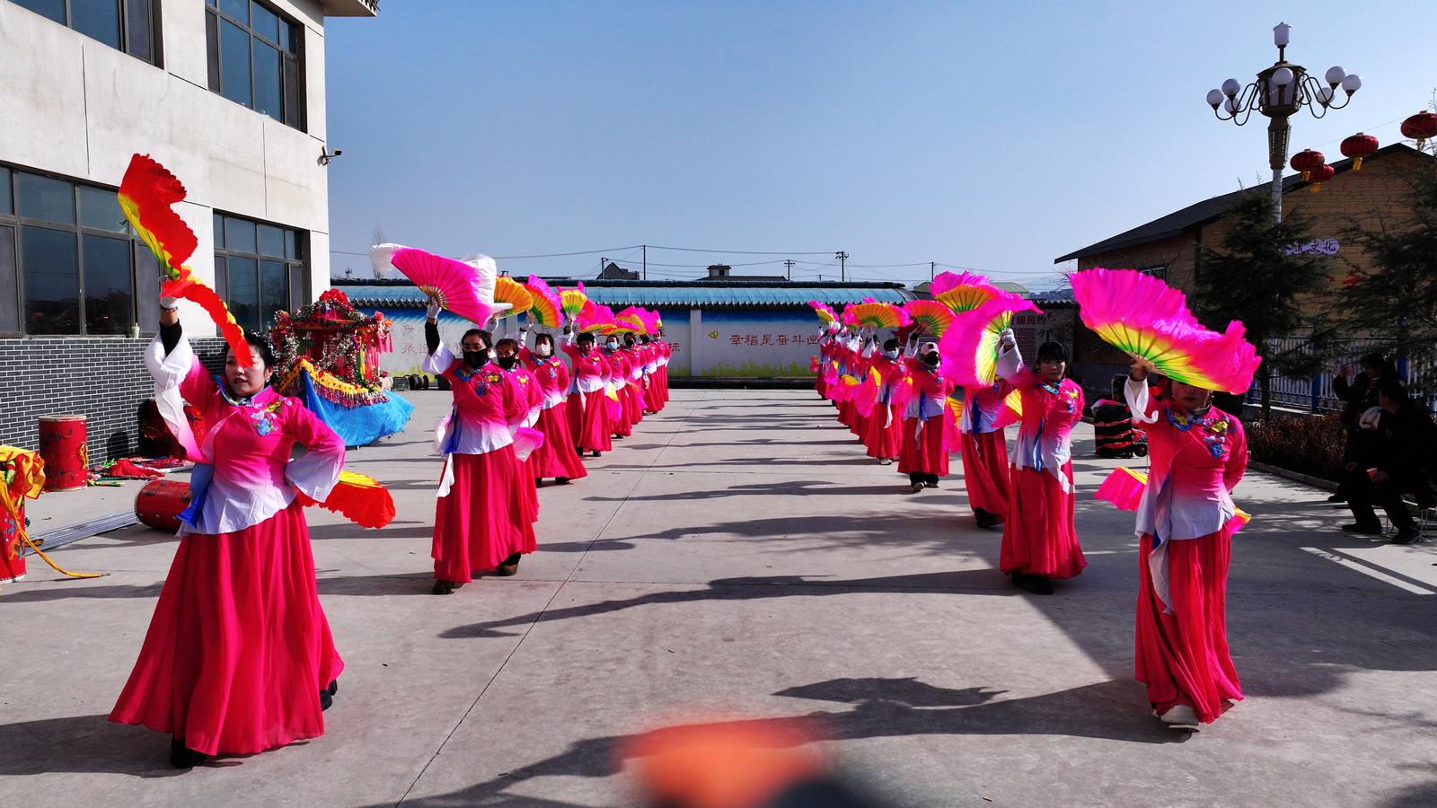 作为承载民俗文化与群众期盼的传统活动,大川村的迎新春社火不仅是新年庆贺的重要形式,更彰显着村民乐观向上的精神追求,让春节充满了独有的民俗韵味与喜庆气息。尽管冬日寒风凛冽,但排练现场的热度丝毫不减,村民们个个热情高涨、精神抖擞,彩扇挥舞如蝶舞,锣鼓齐鸣震长空,欢声笑语在广场上久久回荡,勾勒出一派热火朝天的排练图景。“社火是咱村里过年的老传统,大家伙儿一起排练,热闹又开心,也盼着新的一年顺顺利利。”一位参与排练的村民笑着说道。