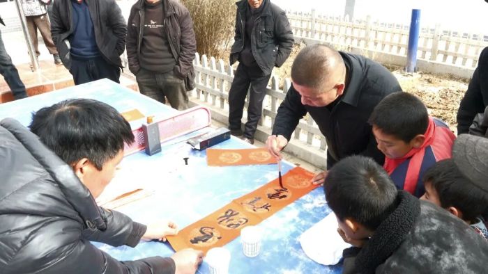 活动现场,书法爱好者们凝神挥毫,红纸、笔墨整齐摆放,一副副寓意吉祥的春联在笔尖流转,村民们拿着刚写好的春联,脸上满是期待与喜悦,现场共义写对联300余副。
