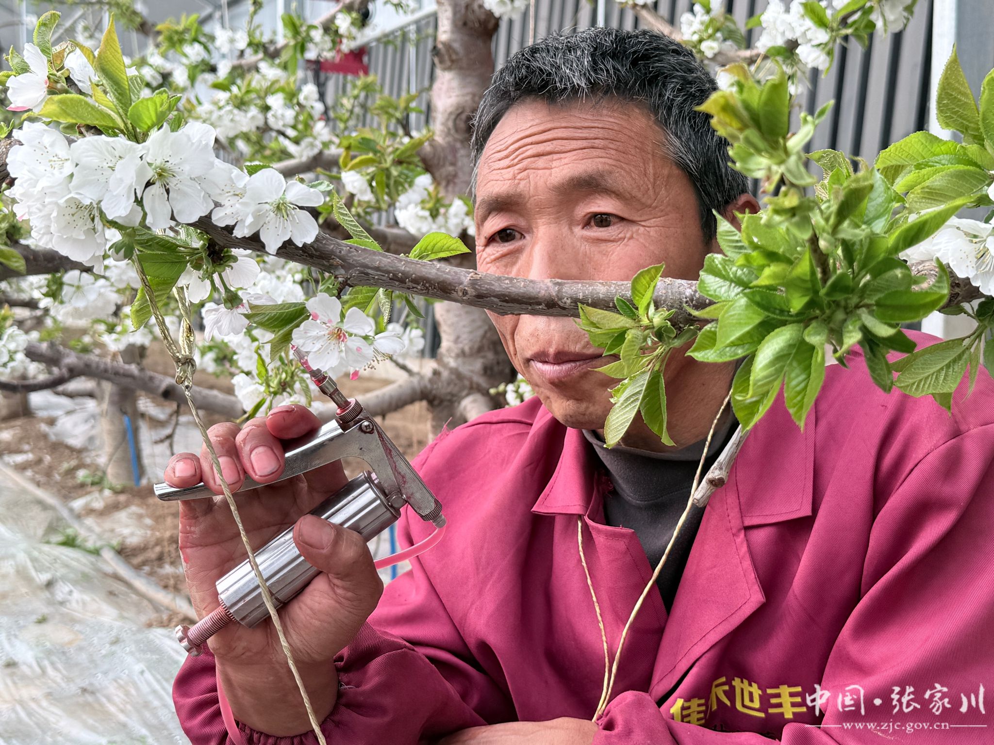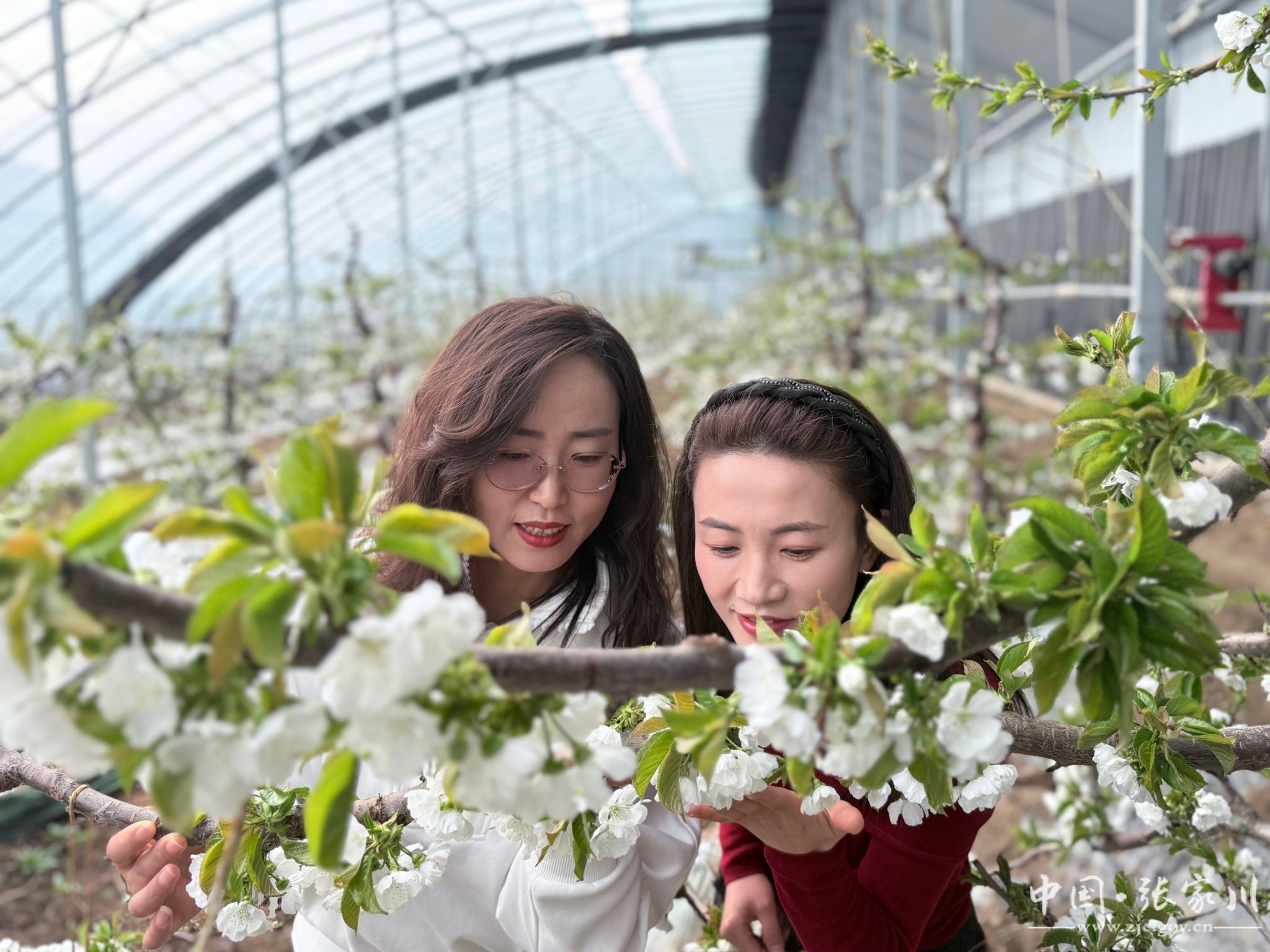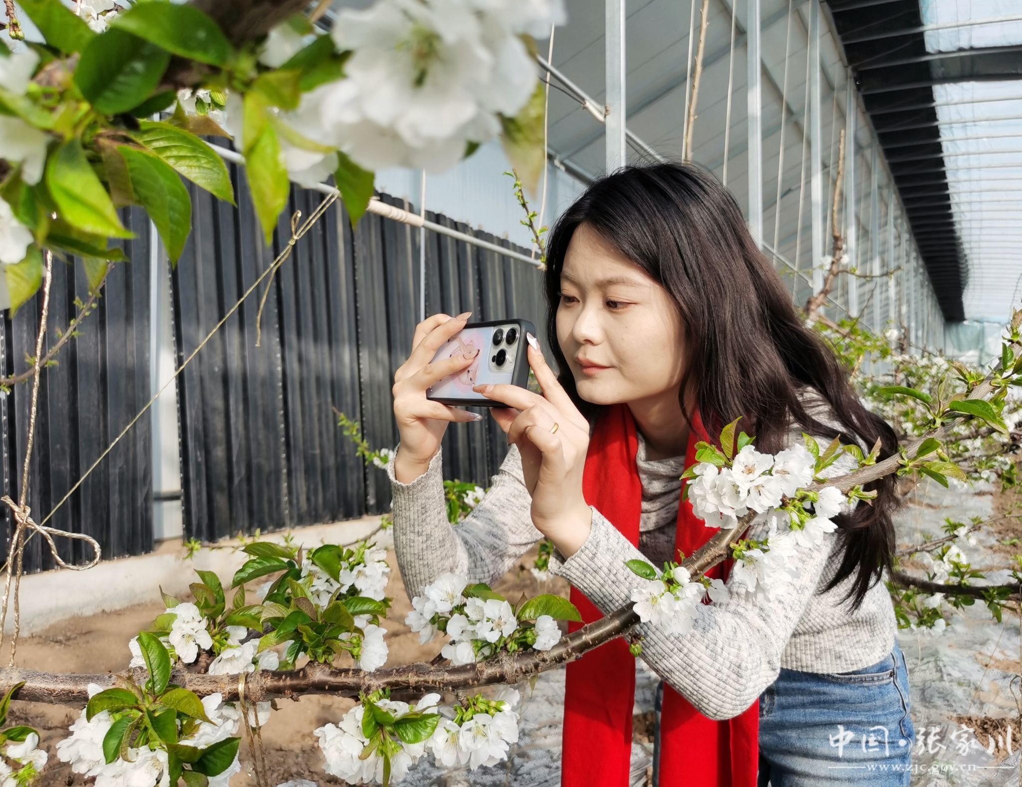 游客们穿梭在花海中,或举着手机定格春色,或跟着果农学习疏花技巧,欢声笑语与花瓣轻摇的沙沙声交织成趣。“在家宅了一冬天,特意约上闺蜜来踏春。”专程从县城赶来的马女士正变换角度拍摄花朵,“棚外冰天雪地,棚内春暖花开,随手一拍都是不用修图的美景。”来自周边村镇的王女士架起手机开启快手直播,向网友分享这份春日惊喜,“乡村大棚藏着这么美的景致,等樱桃熟了,我一定带家人来采摘。”摄影爱好者李先生的快门声不断,“每年樱桃花开我都来采风,这繁花似锦的模样,就是丰收年的最好预兆。”县世亮乐呵呵地说:“咱们不收门票,游客来赏花就是帮我们宣传。”