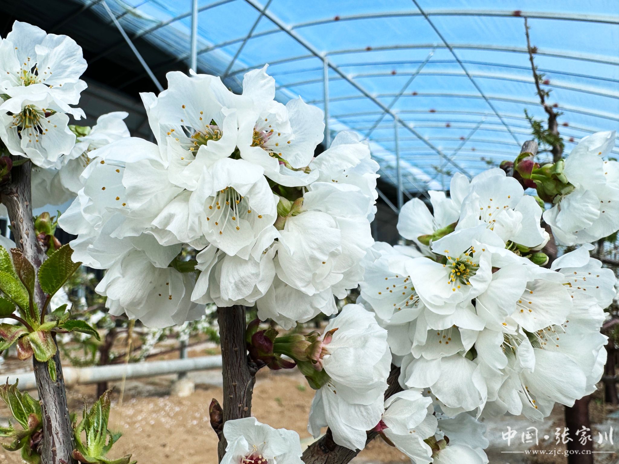 寒冬料峭,年味渐浓。当山野的残雪尚未消融,位于张家川镇刘家村的张家川县现代果业产业园内却早已是另一番天地。一树树樱桃花洁白如雪,缀满枝头,微风轻拂,花瓣微微颤动,仿佛无数玉蝶在绿叶间嬉戏飞舞,将新春的序曲欢快地奏响在充满希望的田野上。