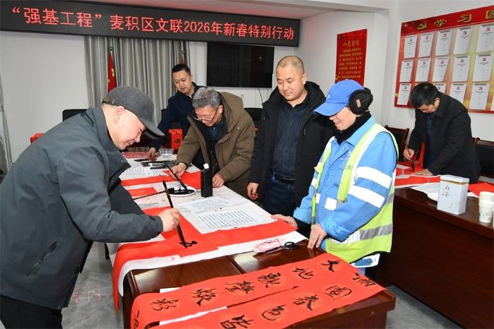 此次活动是麦积区文联“强基工程”2026新春系列活动的重要内容,也是文化惠民、服务基层的具体实践。书画家们以笔墨致敬平凡劳动者,旨在让传统文化走进基层、温暖人心,让每一份坚守都被看见、被尊重。