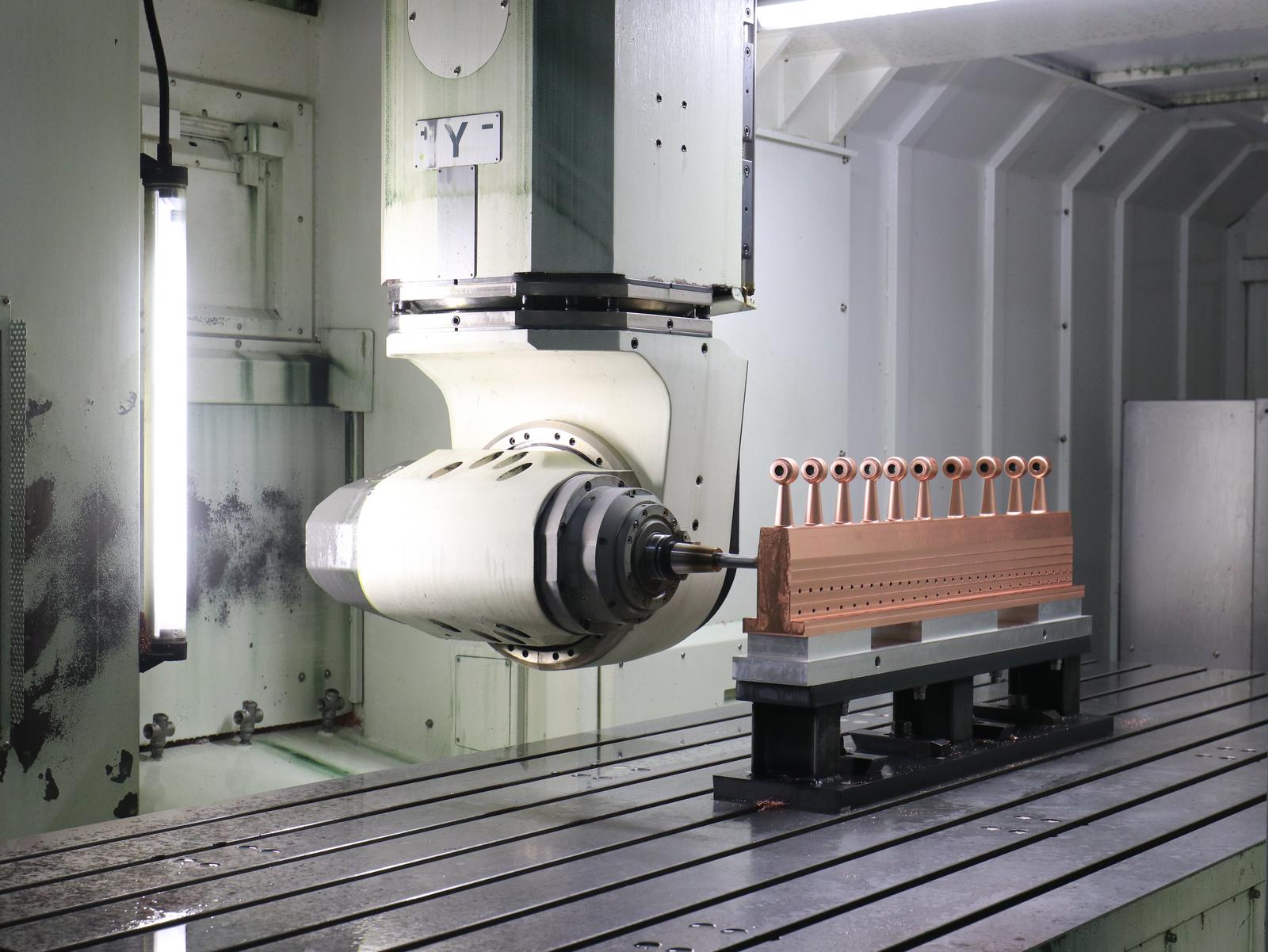 数控加工区域里,两名工人在电脑上输入程序指令,操作机床对产品部件进行精密加工。兰州泰基制造部副部长张进龙指着机床介绍:“这台机床的床舱采用五轴联动设计,一次装夹即可完成所有工序加工,大幅提升了生产效率。过去,这类工作需要三组工人在不同机床分别操作才能完成。”