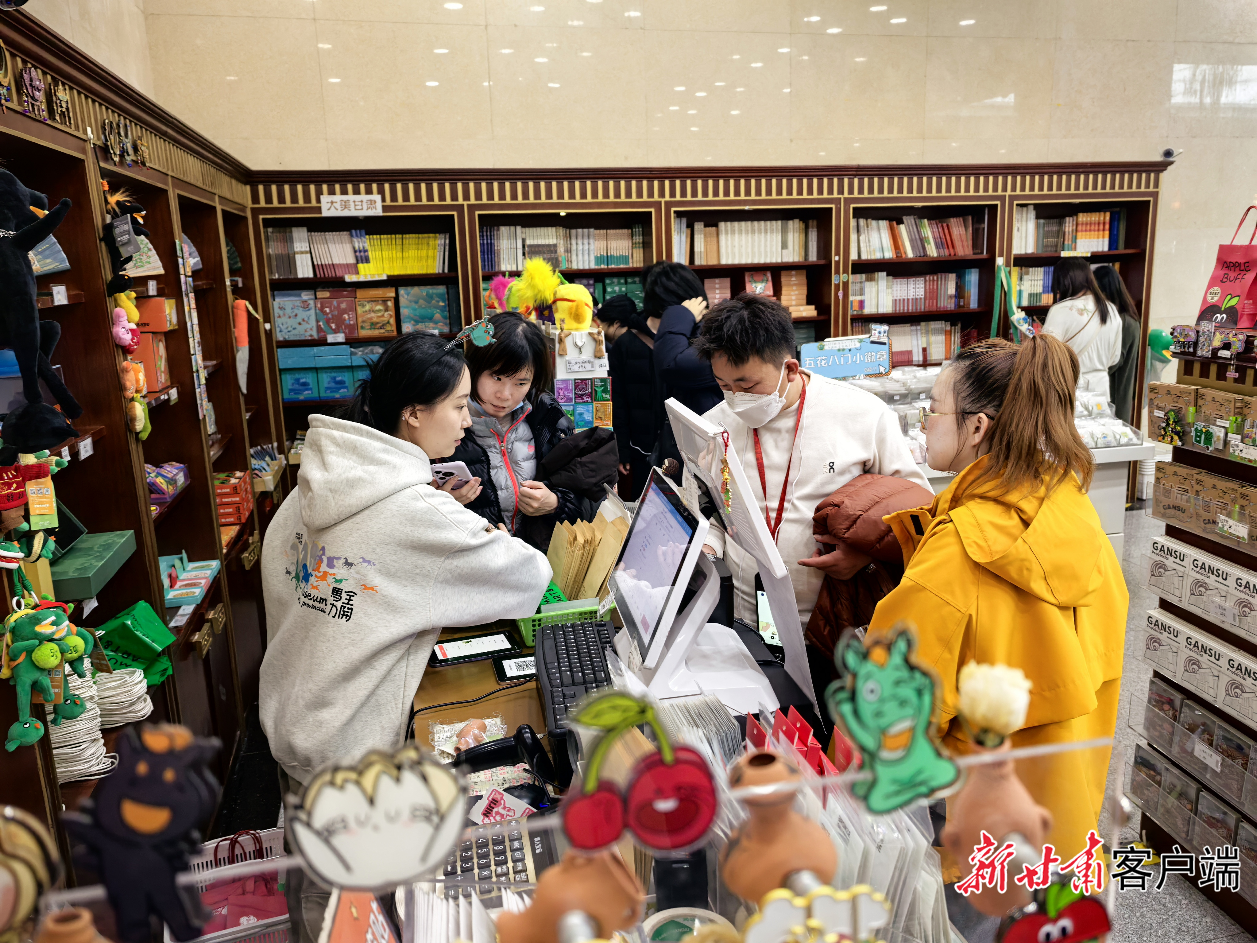 热闹的人群中,生活馆的工作人员步履匆匆却忙而不乱。有人麻利地将刚到的“绿马”文创摆上货架,放得整整齐齐;有人耐心解答游客的疑问,从“绿马”的设计灵感讲到铜奔马的“前世今生”……