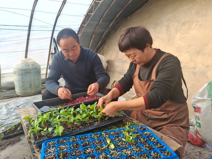 走进标准化育苗温室,温润清新的空气里弥漫着草木清香,黄瓜幼苗鲜嫩挺拔、长势喜人。工人们手法娴熟地开展嫁接、固定作业,动作连贯流畅。