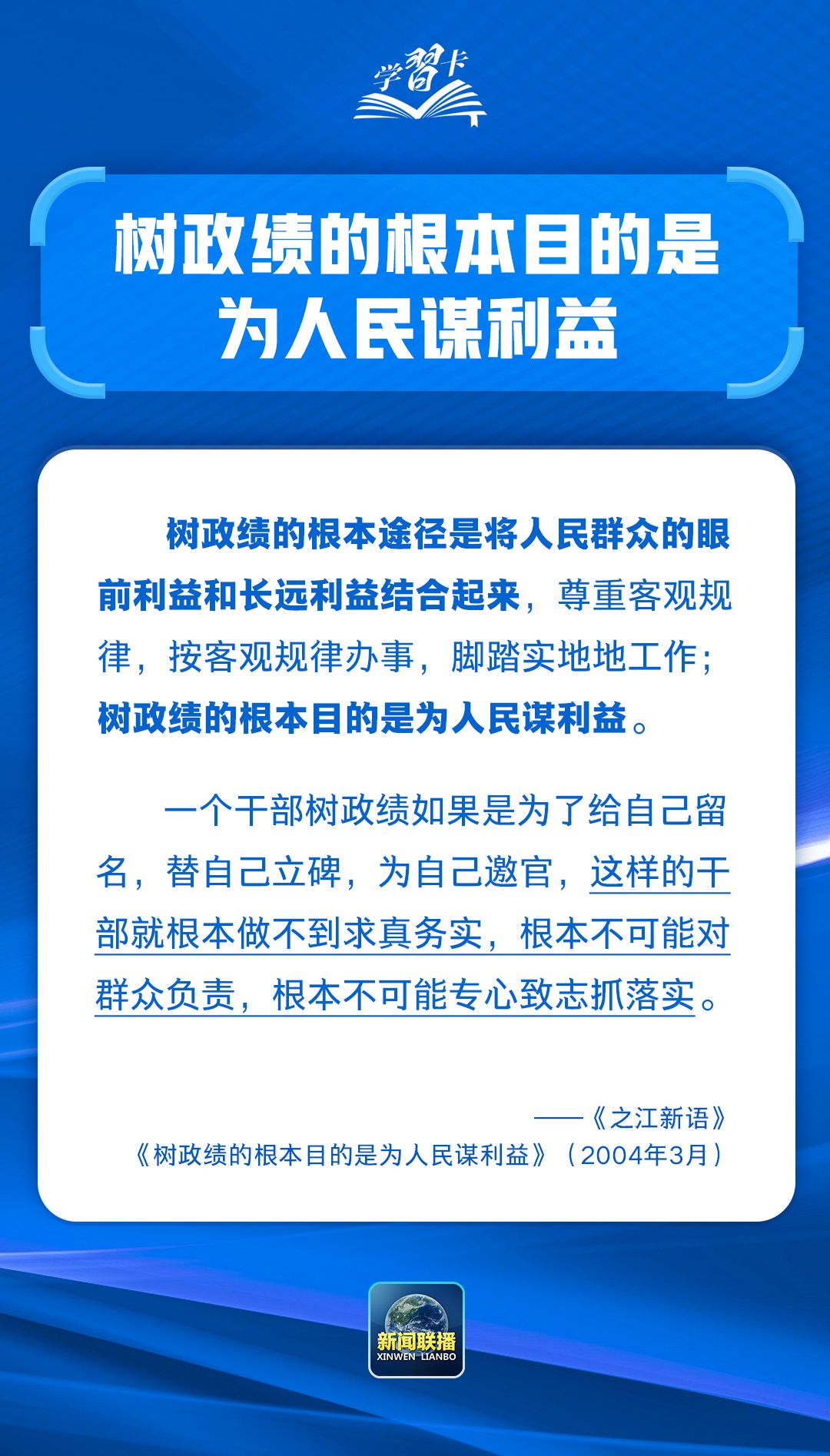 学习卡丨共产党人必须牢记,为民造福是最大政绩
